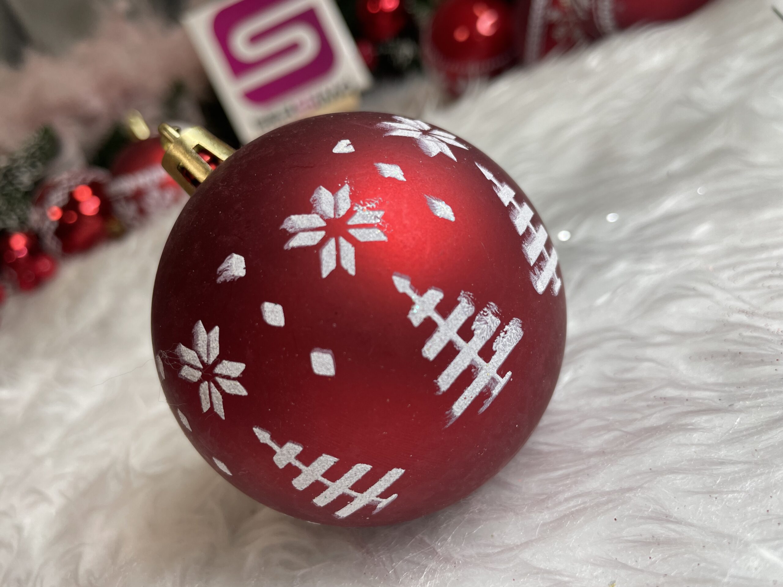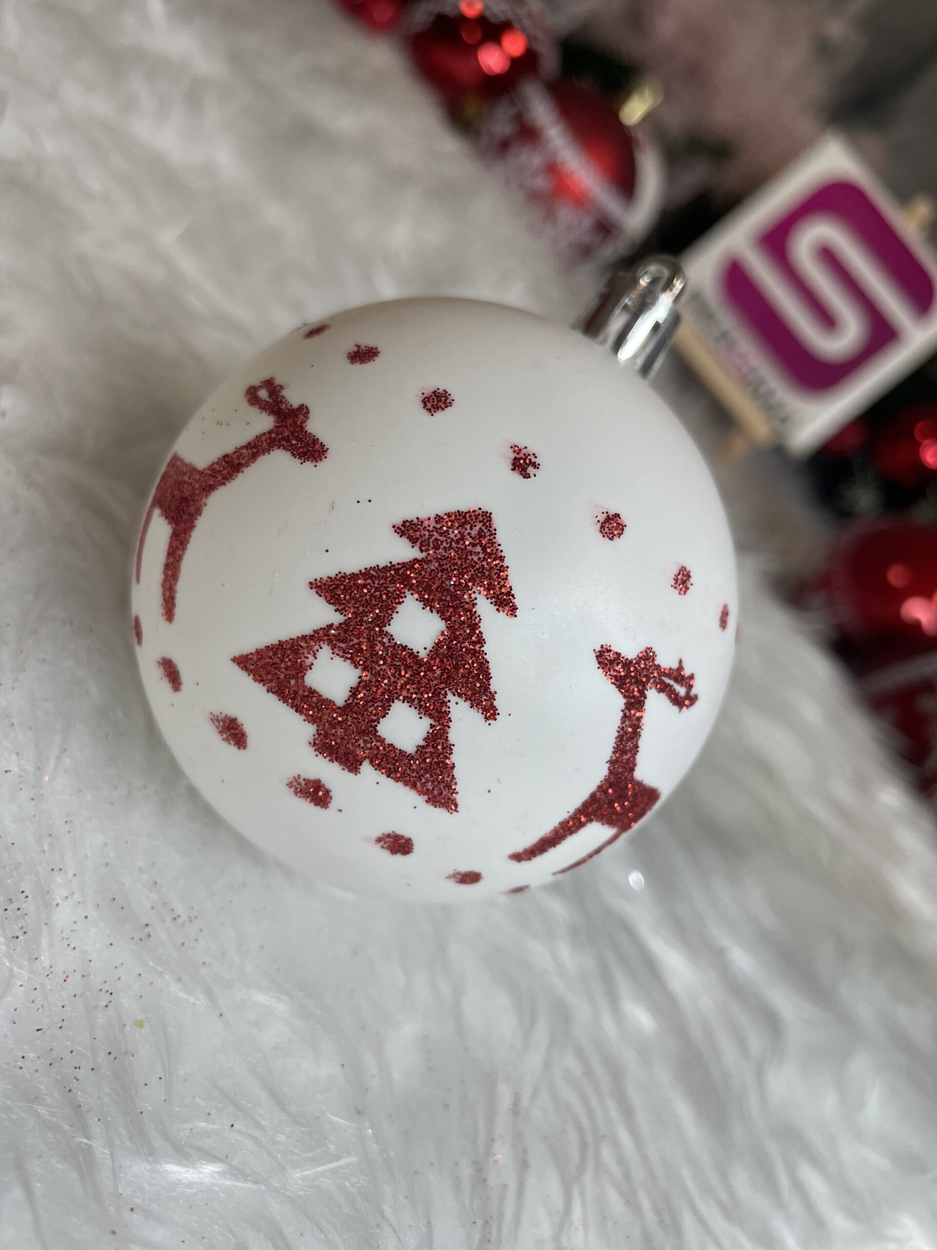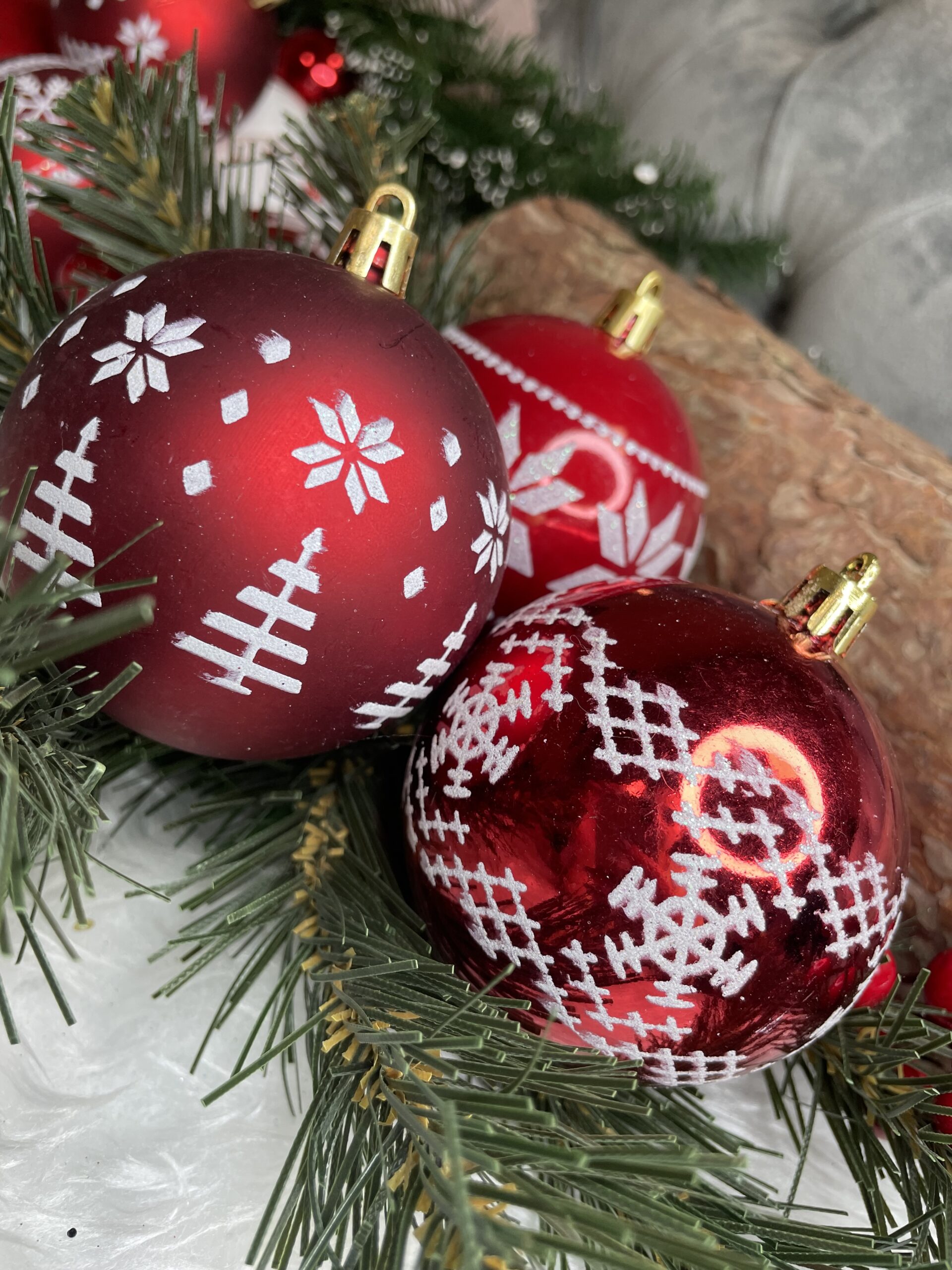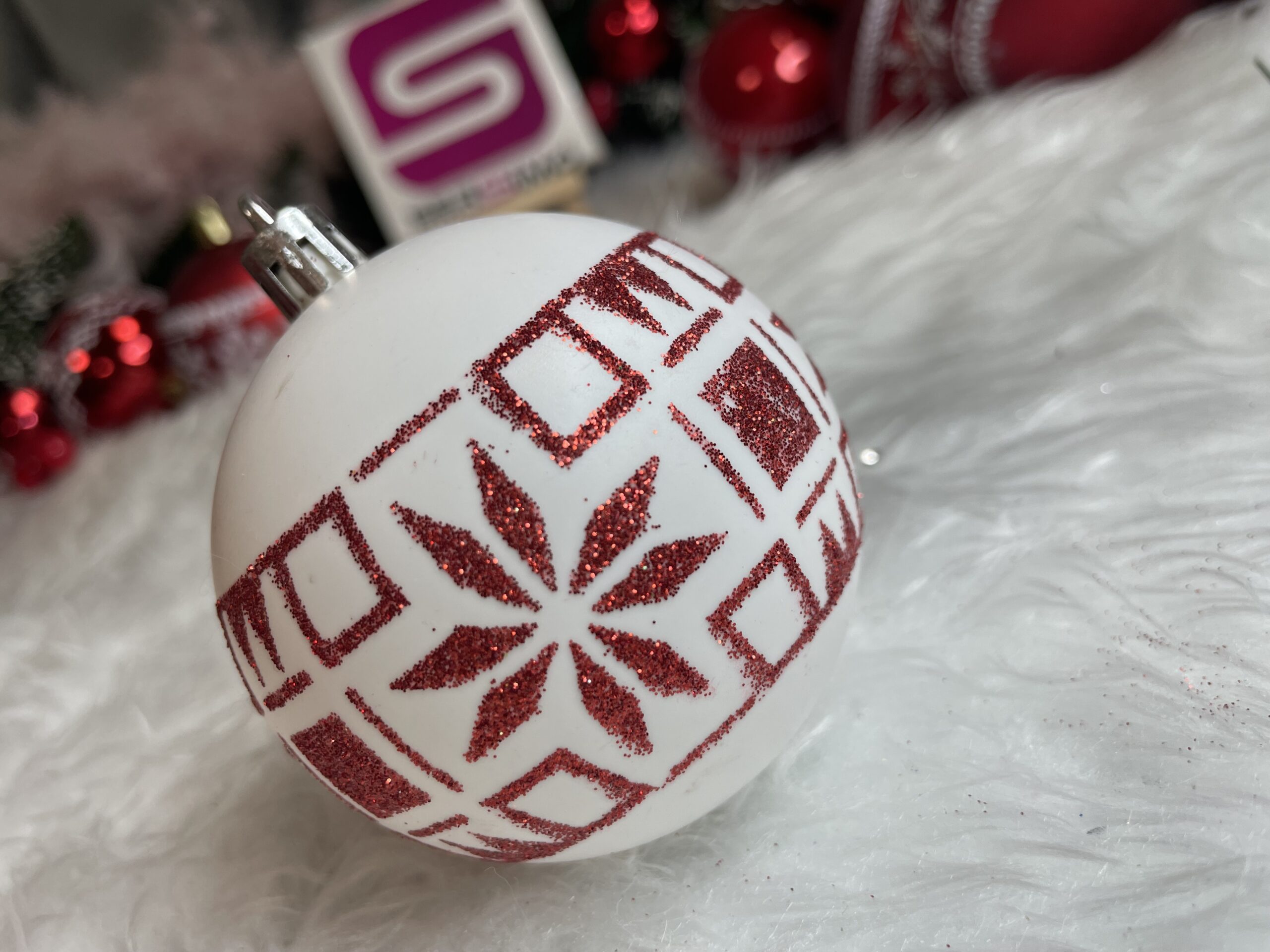 Set globuri de Craciun cu modele de sarbatori, 30 bucati, 7cm, alb rosu Household NewTrend