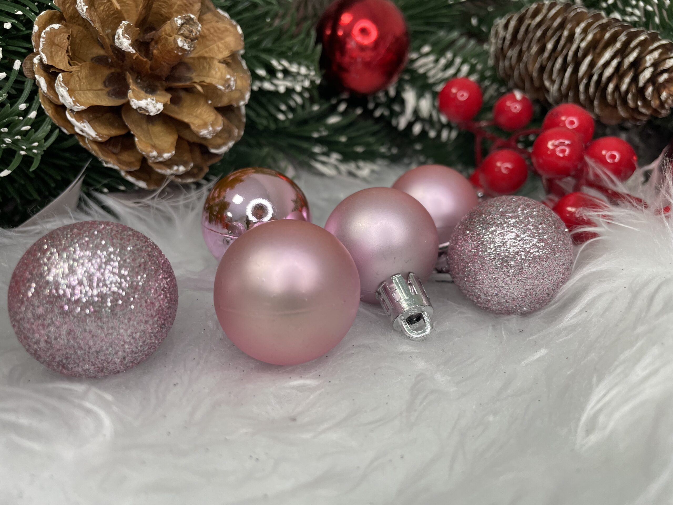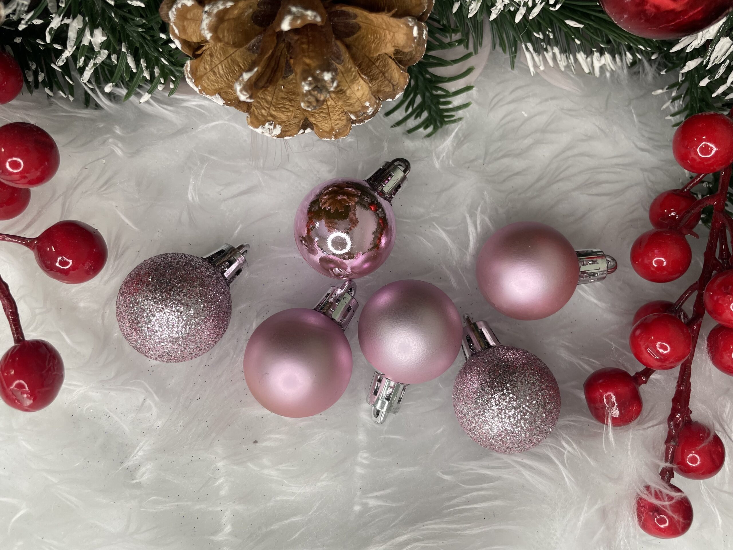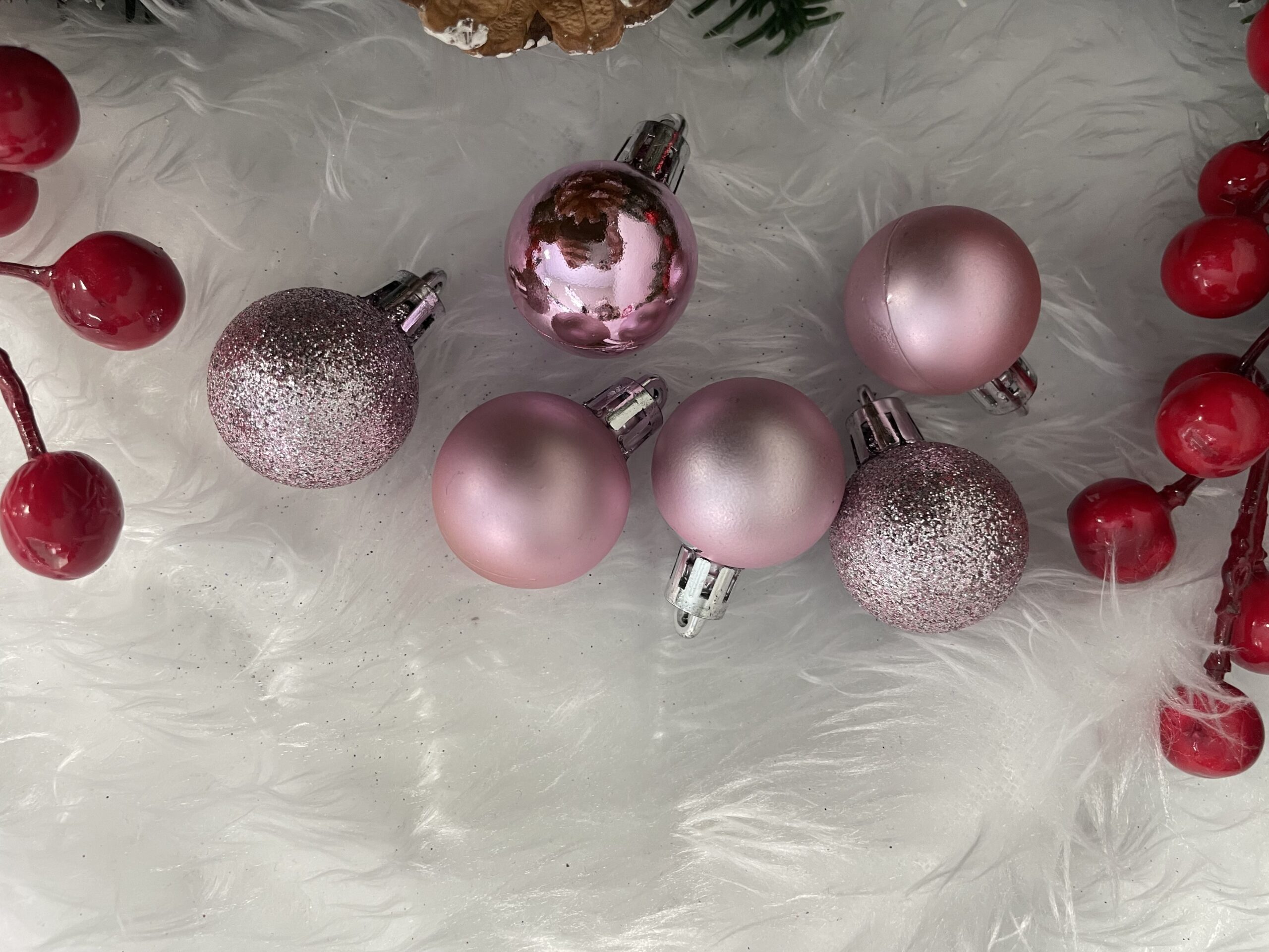 Set globuri de Craciun roz, 30 bucati, 3 modele, 3 cm, incasabile
