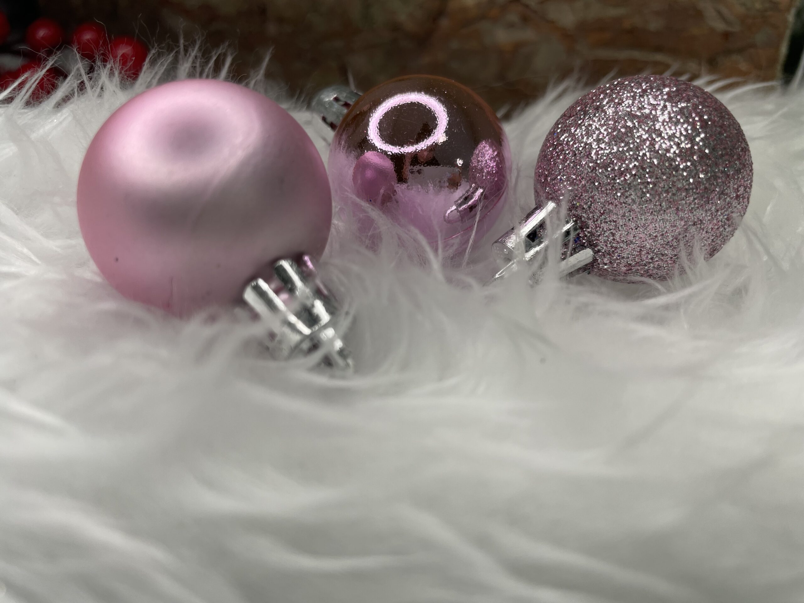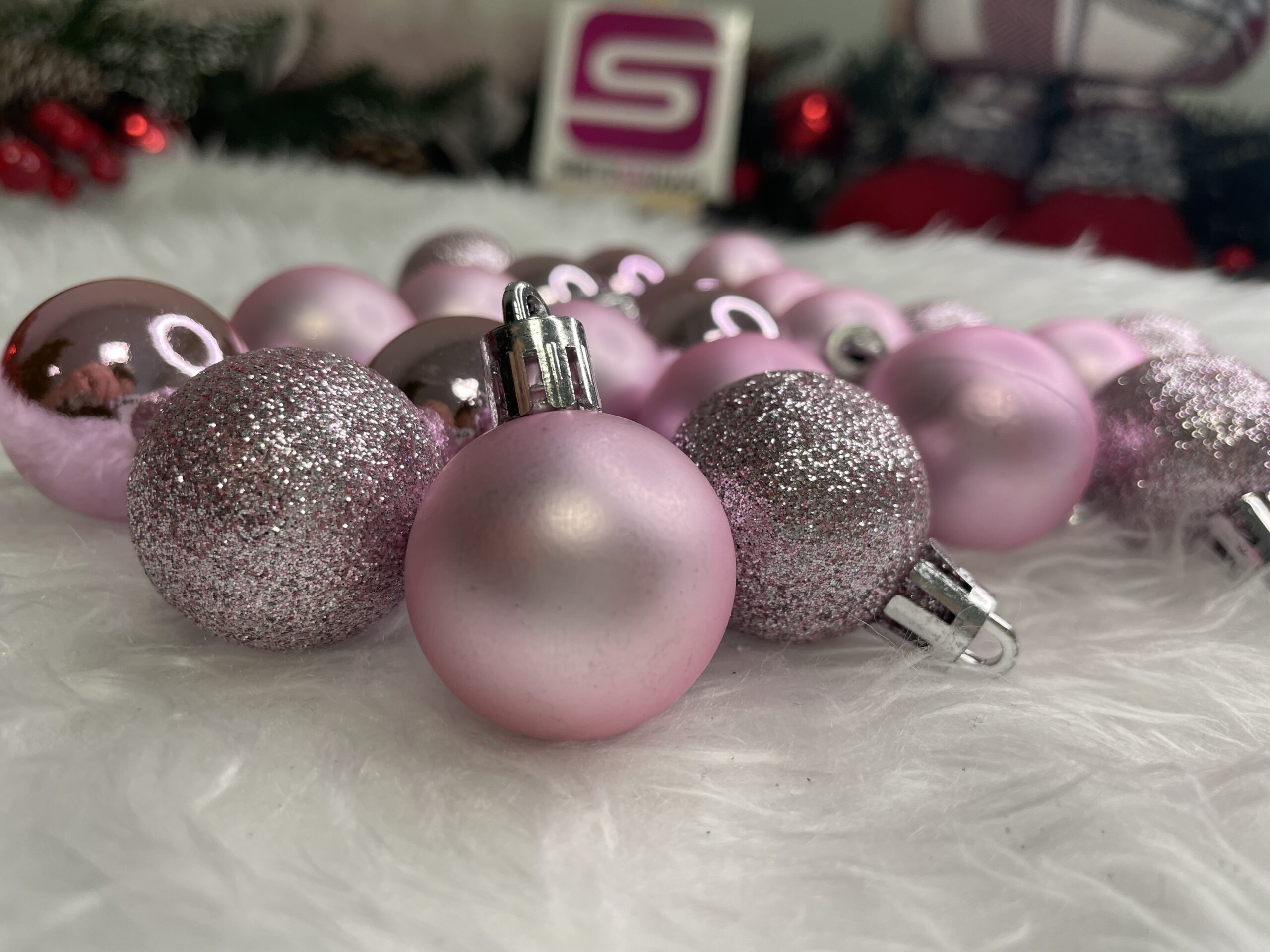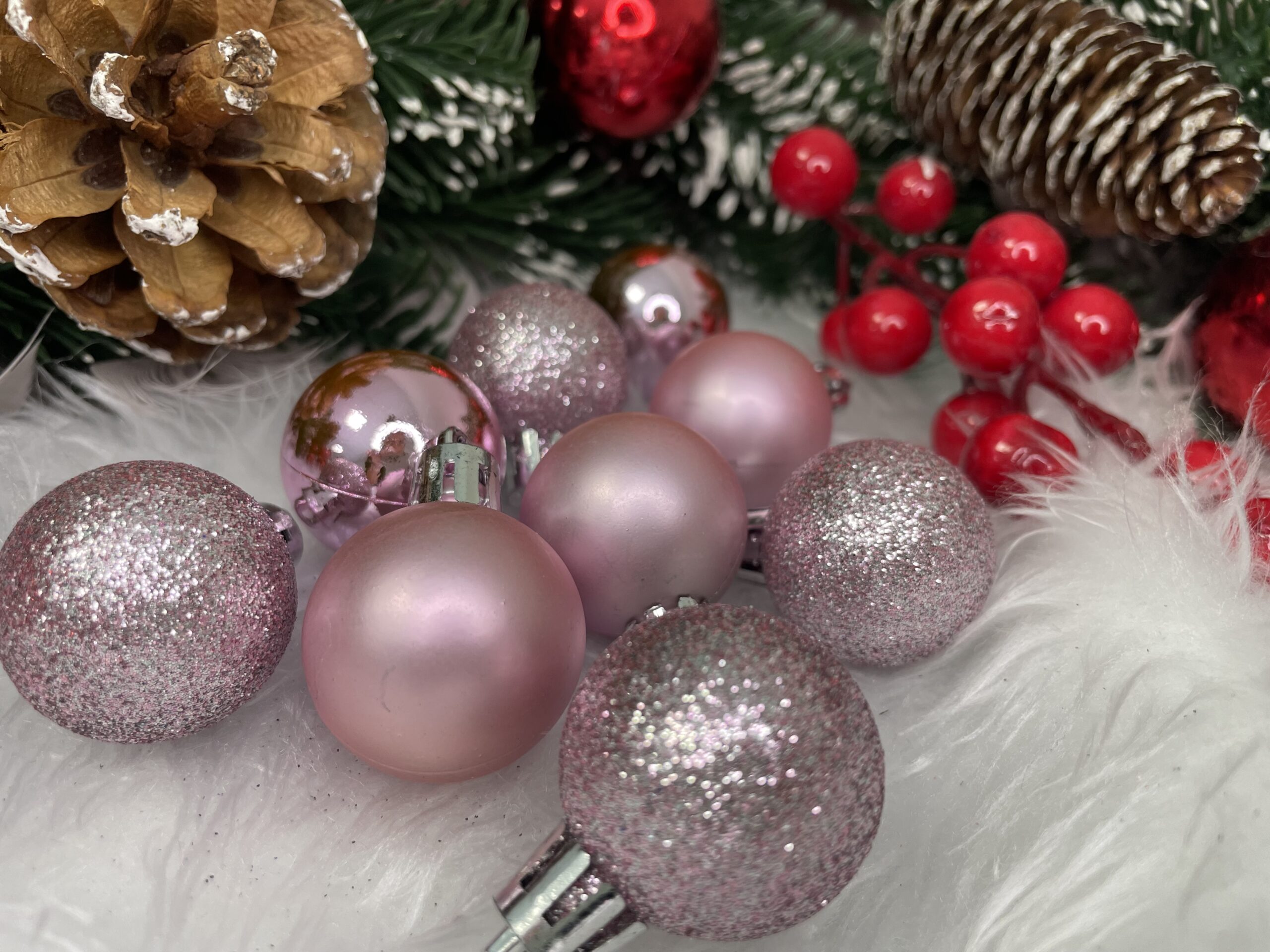 Set globuri de Craciun roz, 30 bucati, 3 modele, 3 cm, incasabile