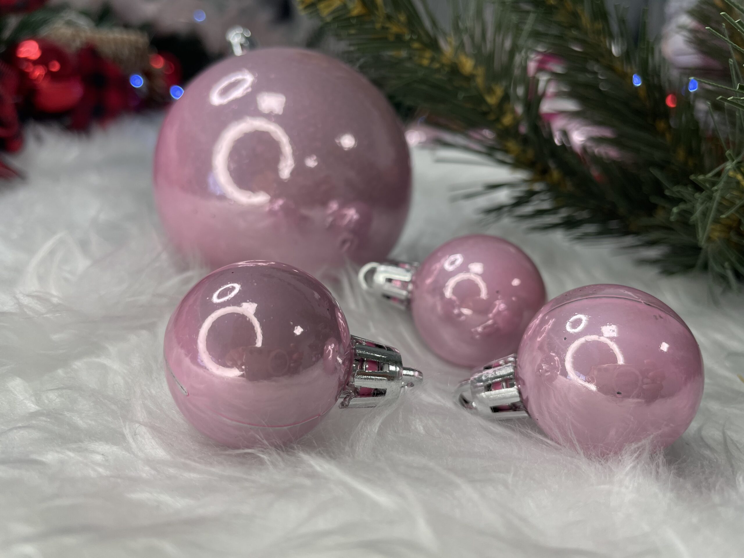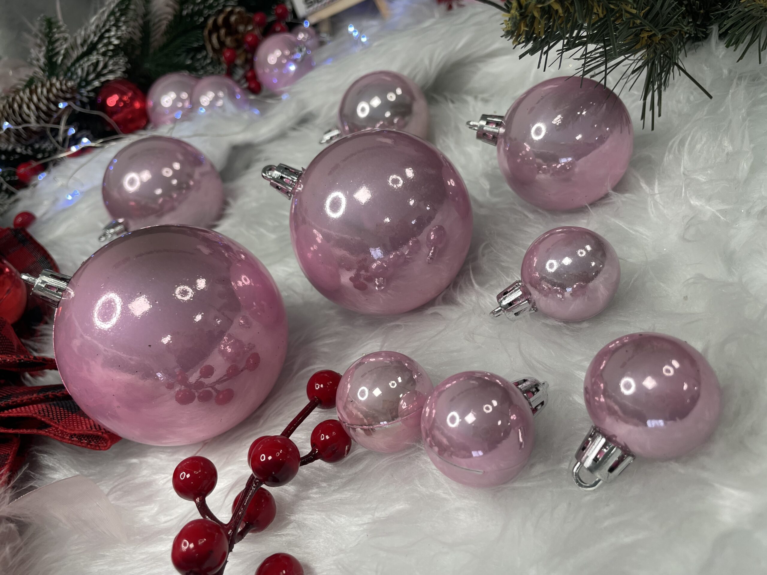 Transformă bradul într-un decor festiv de poveste cu acest set globuri de Crăciun roz, potrivit pentru amenajări elegante, moderne și pline de farmec. Nuanța delicată de roz oferă un aspect rafinat, iar dimensiunile variate te ajută să creezi un brad echilibrat și atrăgător. Fiind realizate din plastic rezistent, globurile sunt o alegere practică pentru familiile cu copii sau animale de companie.