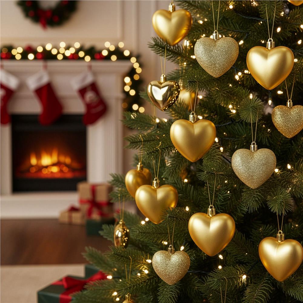 Set globuri decorative in forma de inima, 16 bucati, plastic, 4-7 cm, auriu Household NewTrend