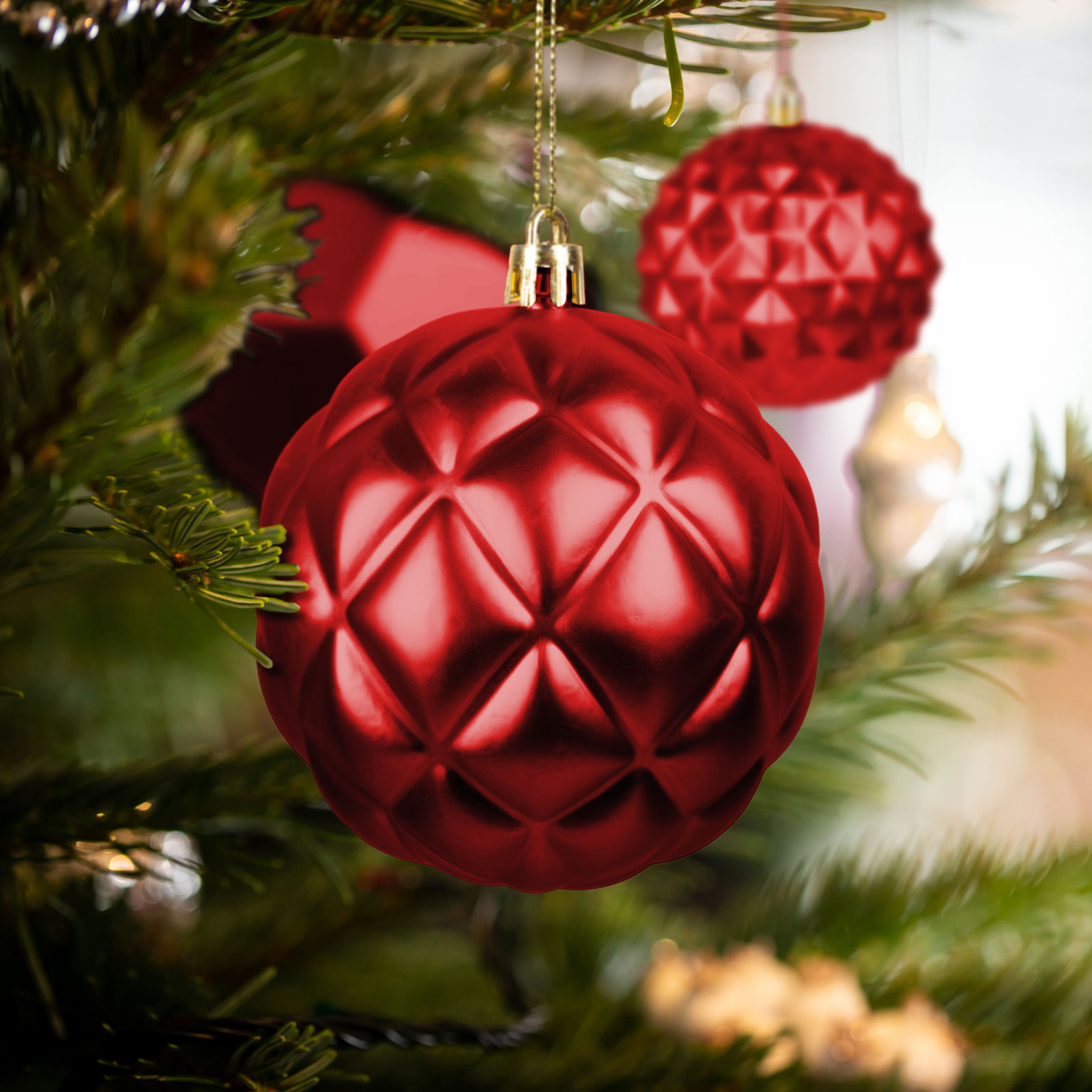 Globuri pentru brad, roșu mat, pentru un aspect elegant. 6 forme speciale, unice într-un singur set.