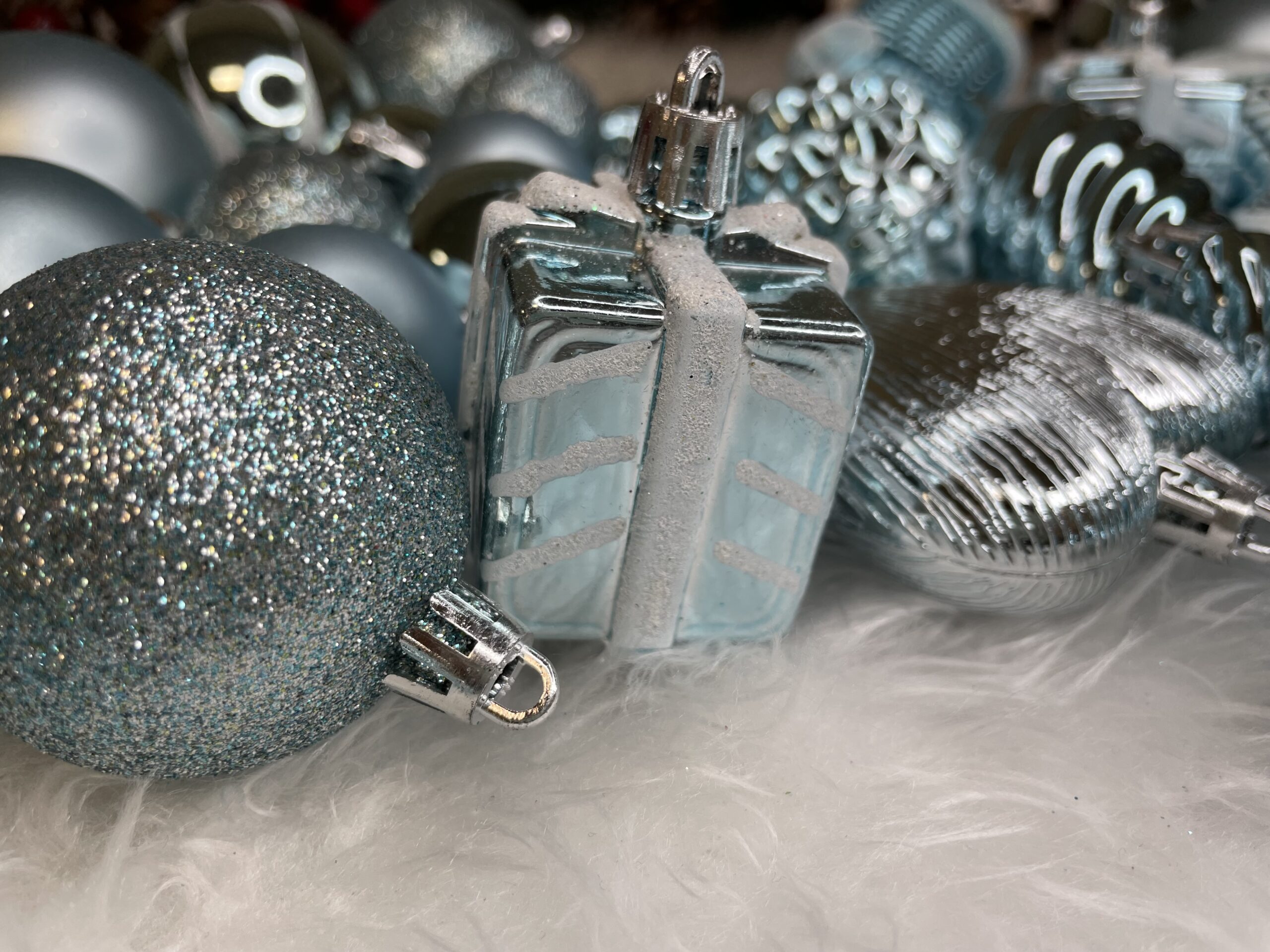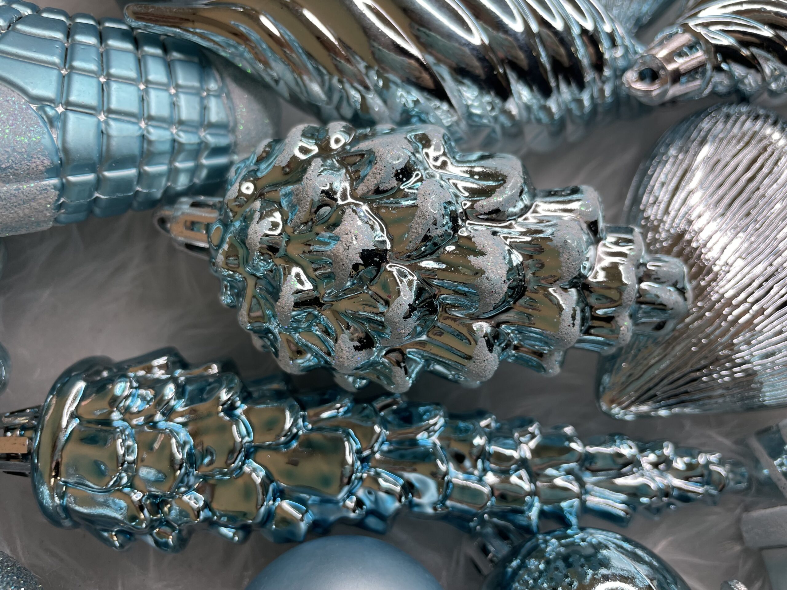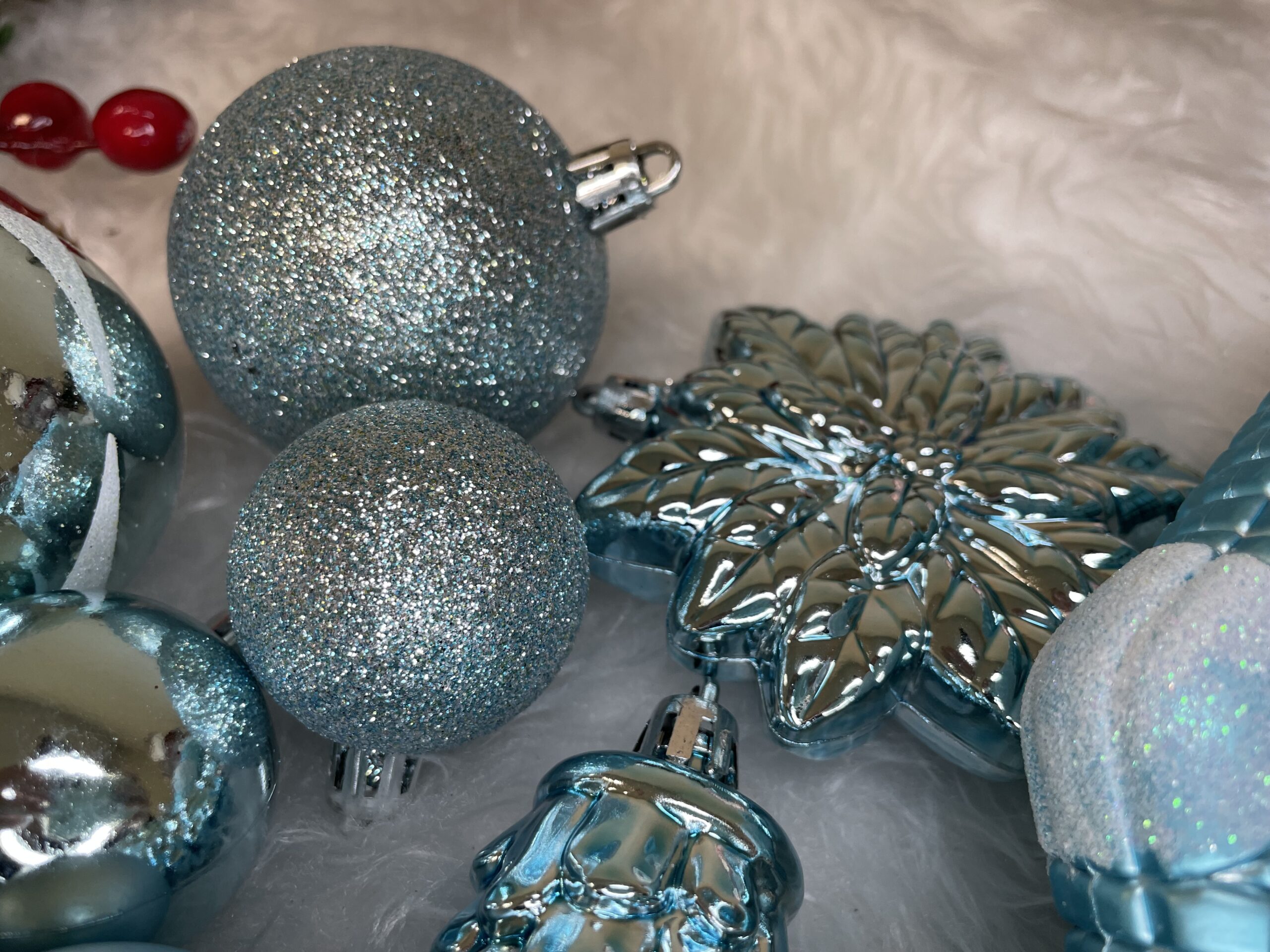 Set globuri si decoratiuni de Craciun, 72 piese, diverse dimensiuni, albastru Household NewTrend