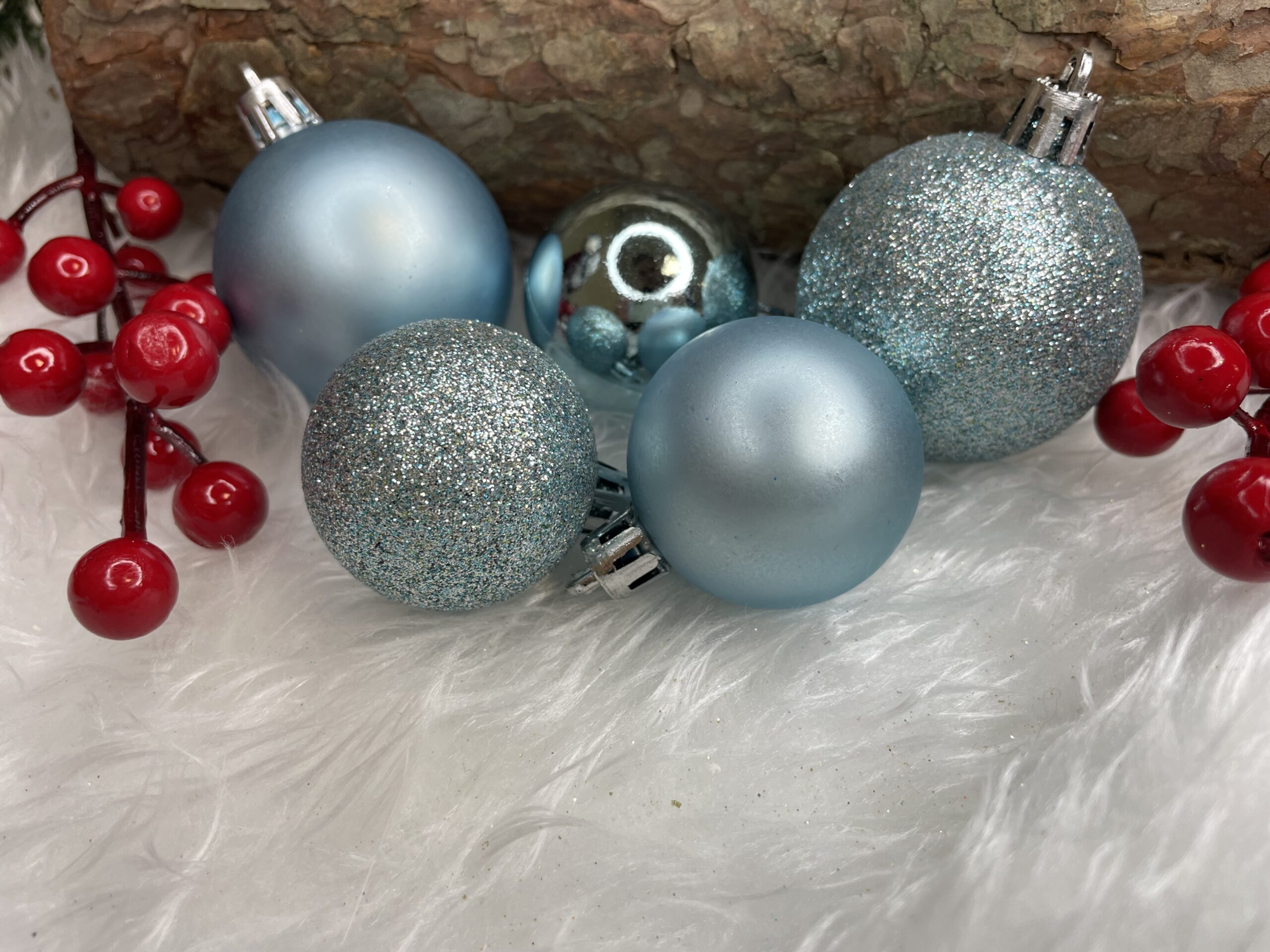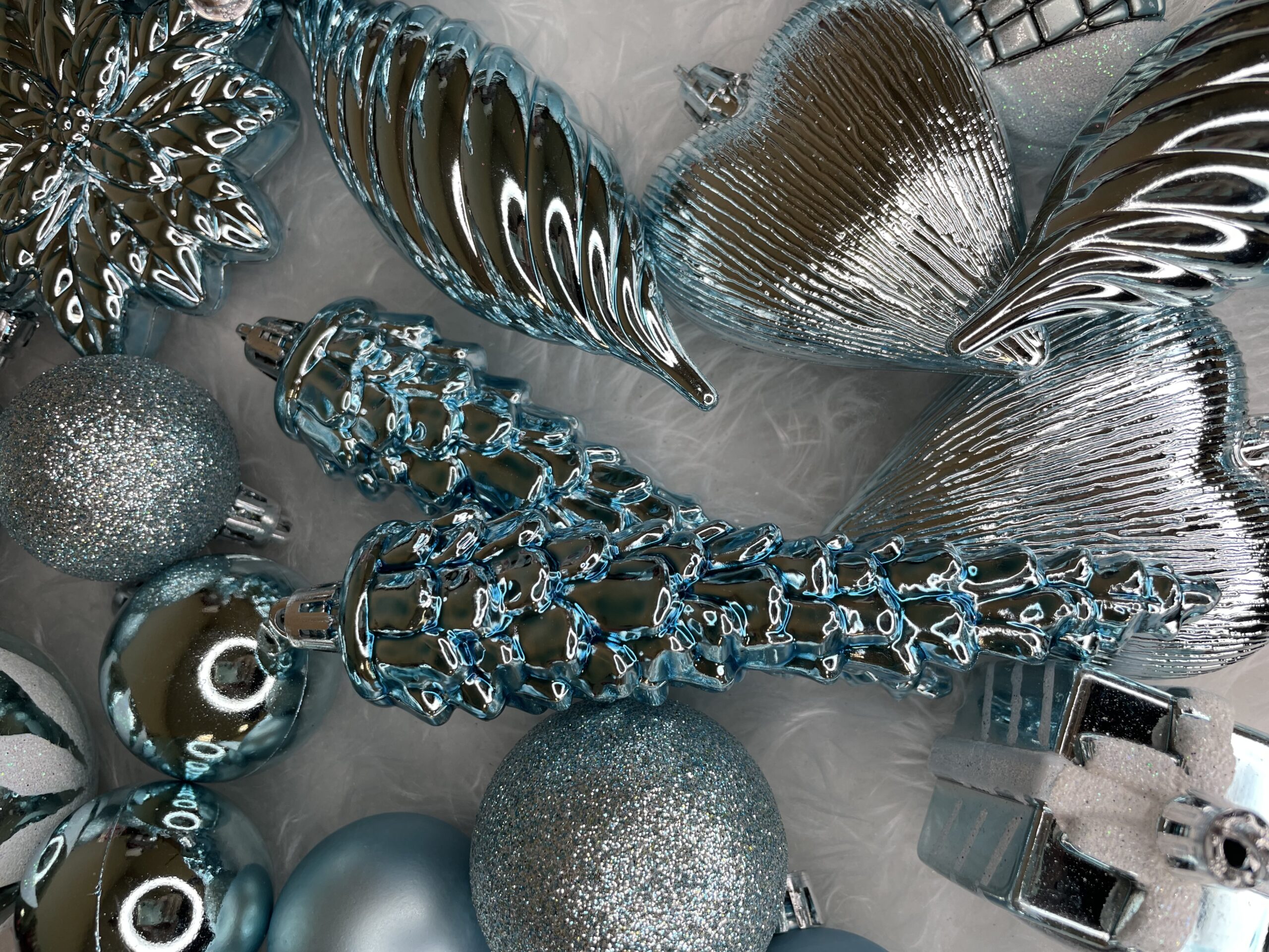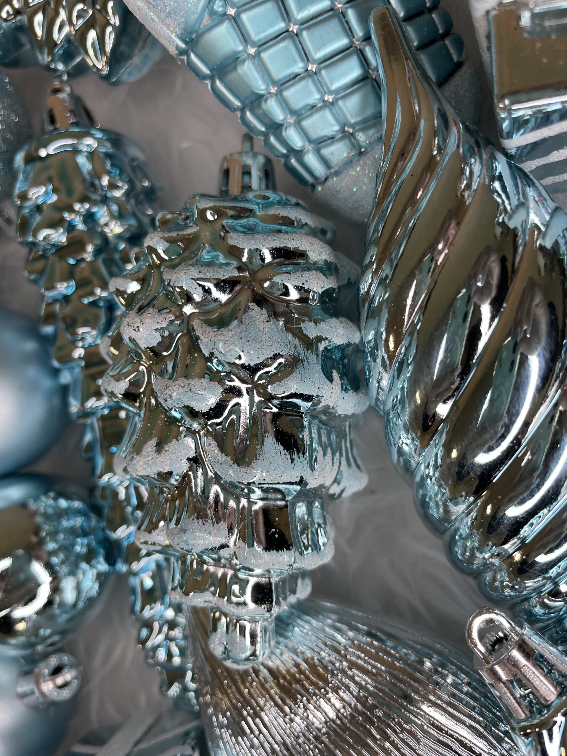 Set globuri si decoratiuni de Craciun, 72 piese, diverse dimensiuni, albastru Household NewTrend