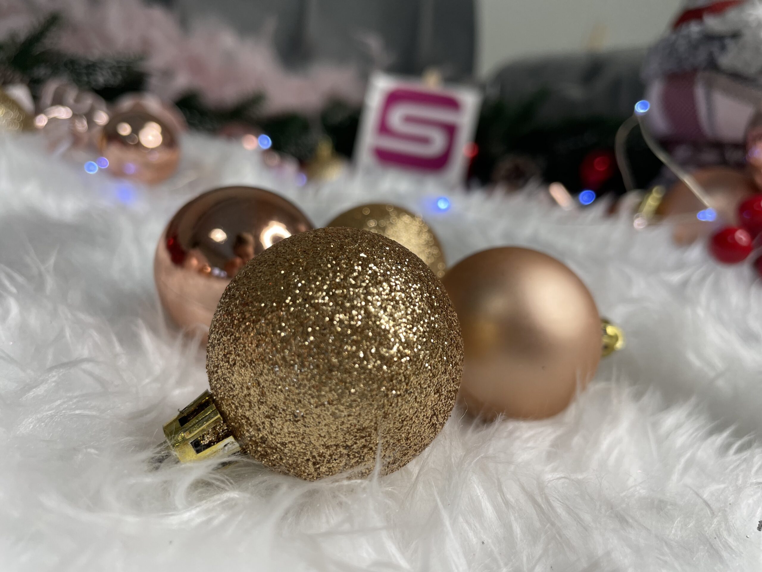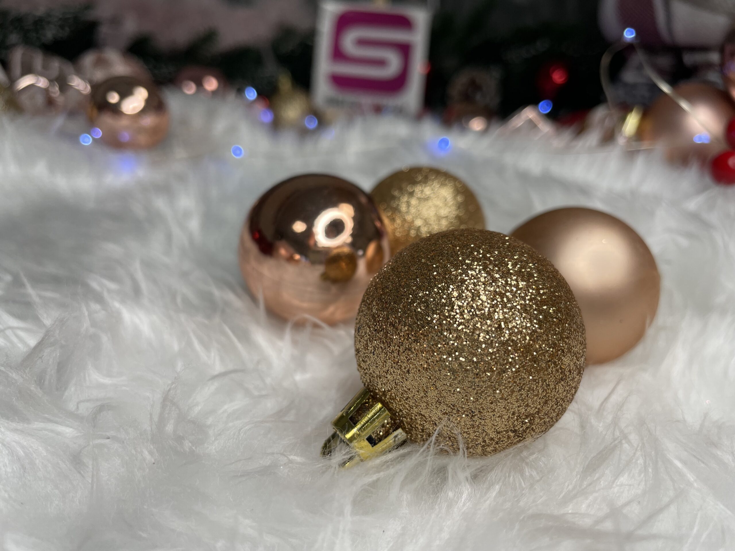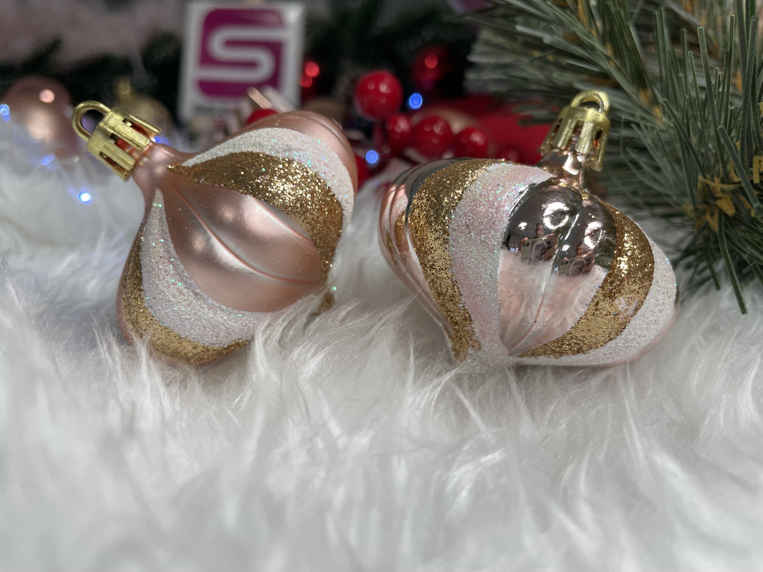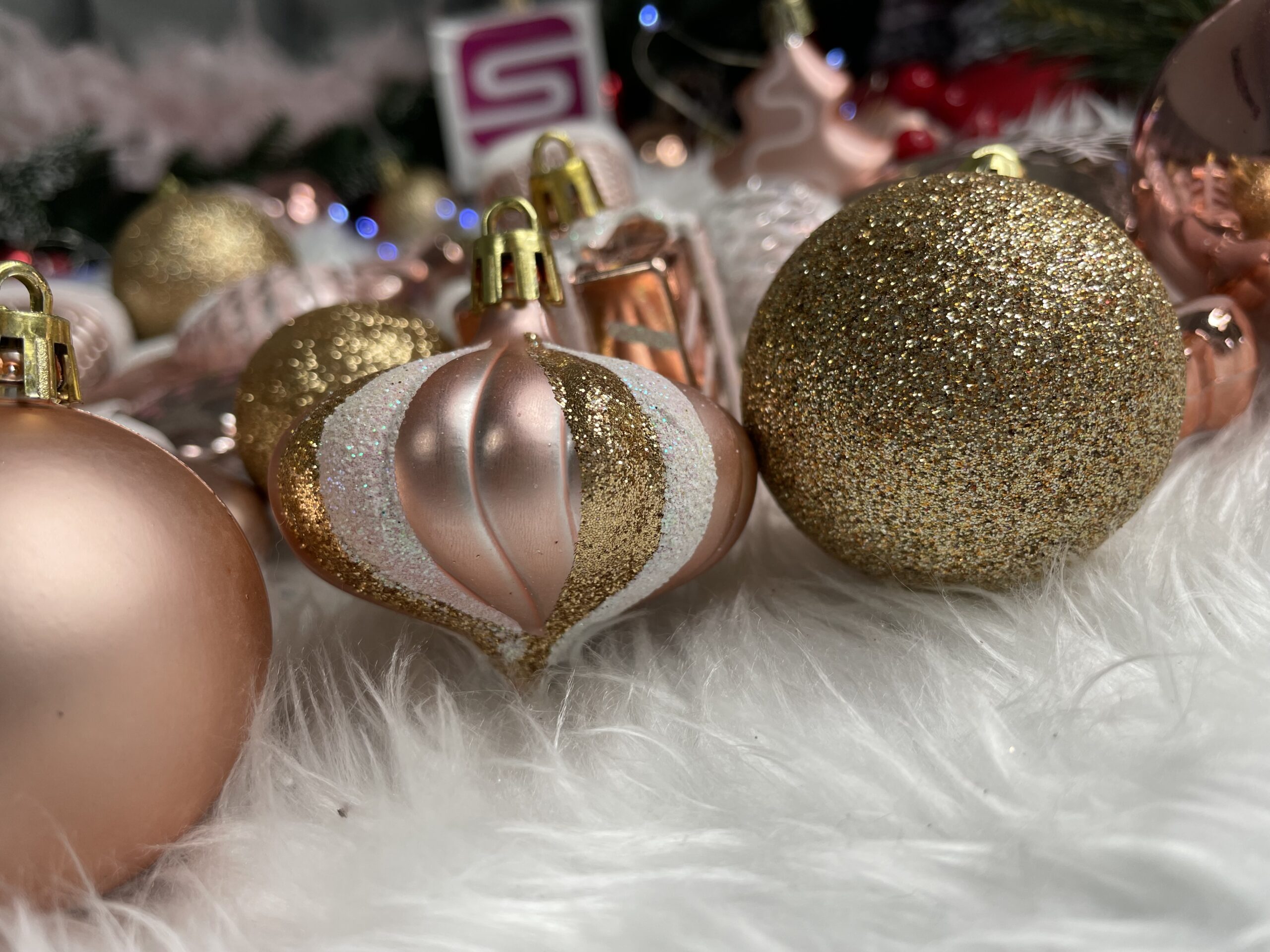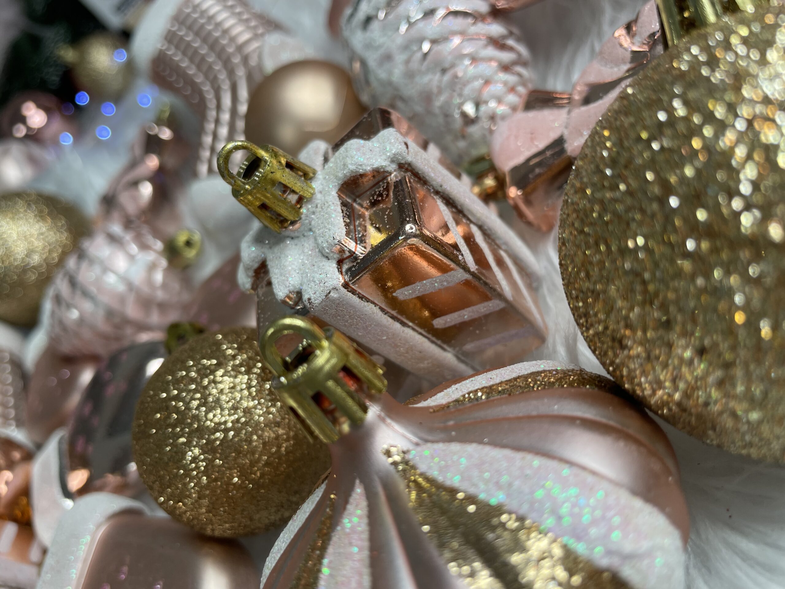 Set globuri si decoratiuni de Craciun, 77 piese, diverse dimensiuni, roz auriu Household NewTrend