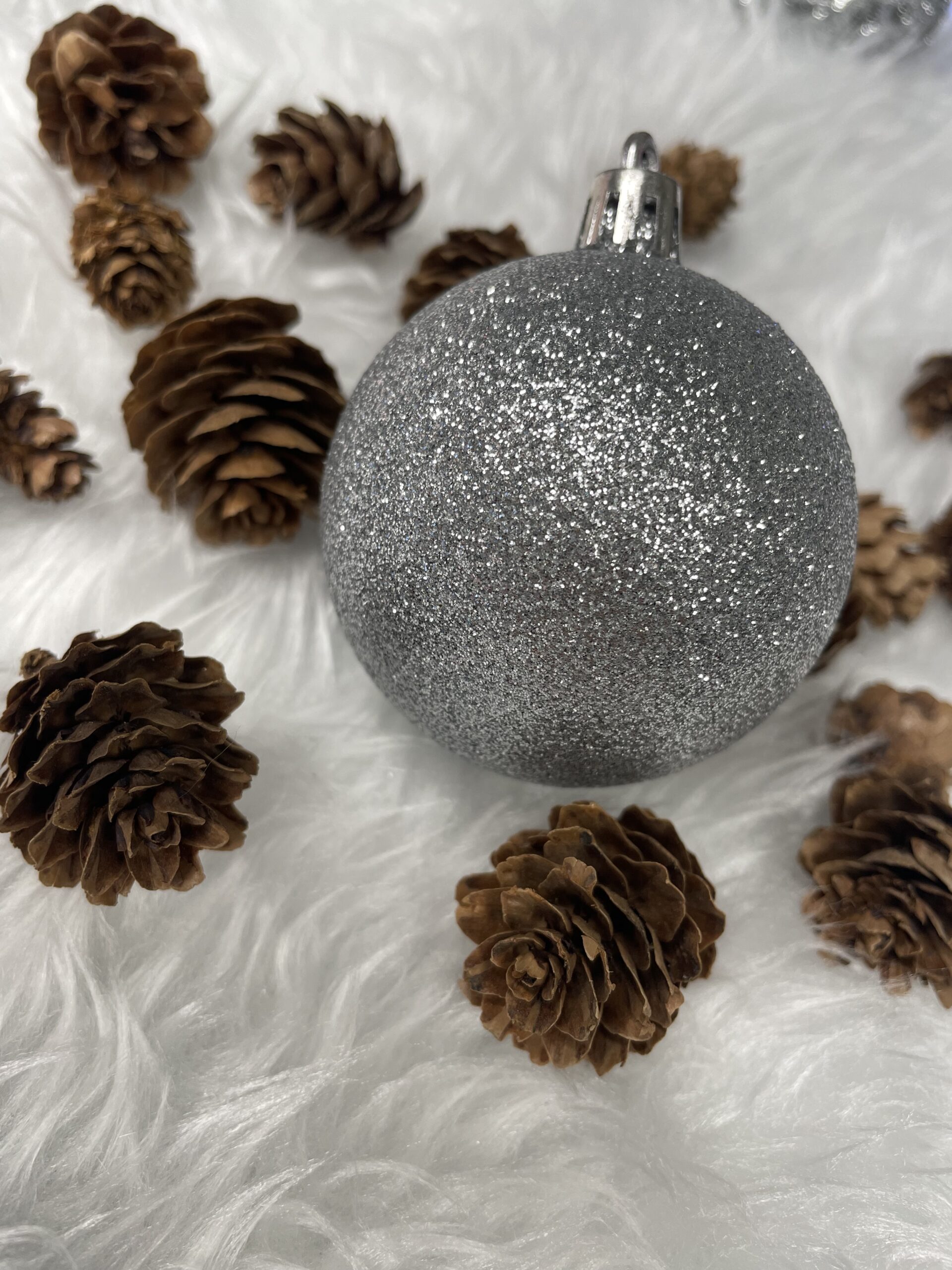- 6 x glob rotund mediu cu sclipici - 4 cm