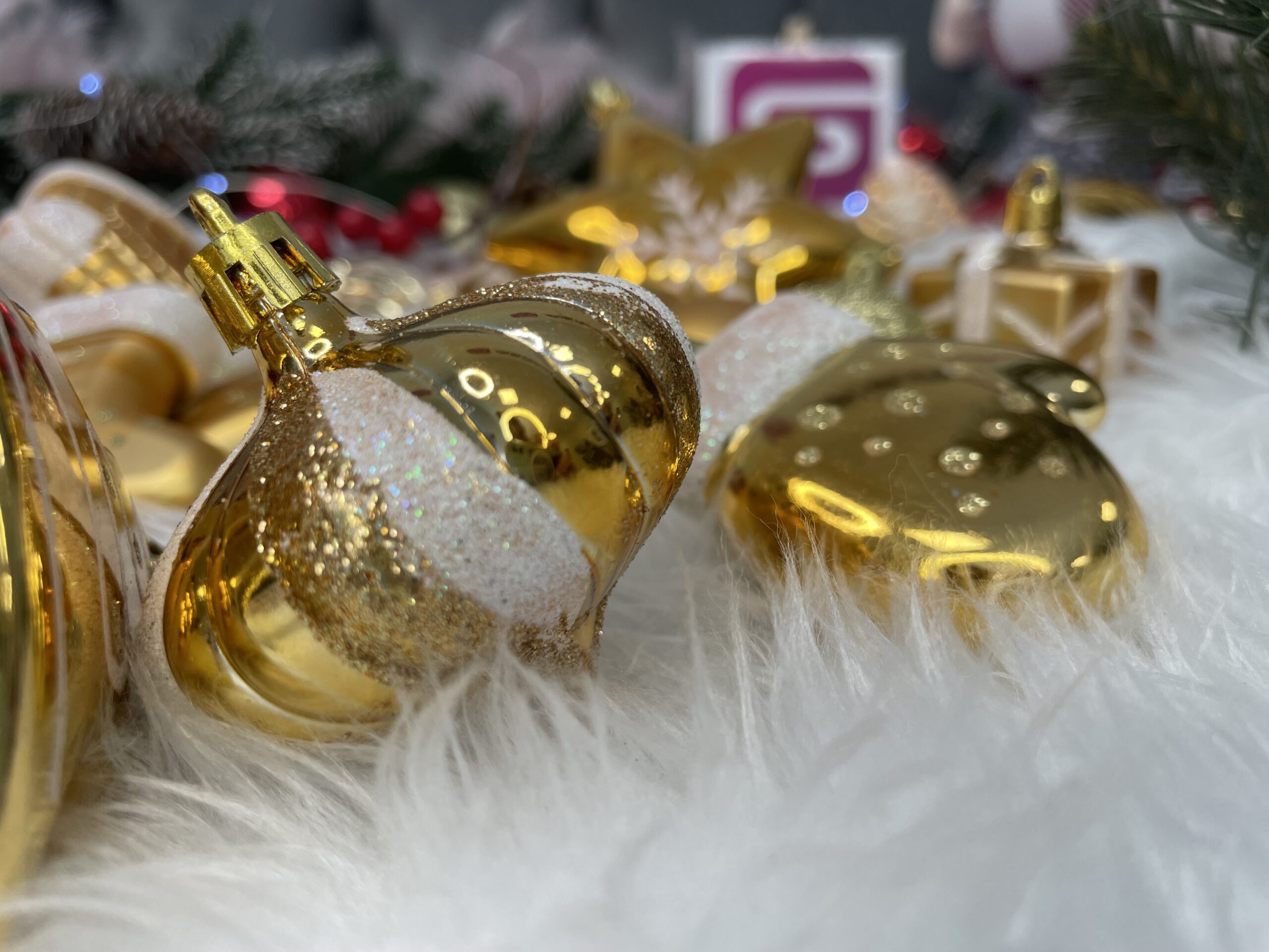 Adauga bradului un aspect festiv si elegant cu acest set globuri Craciun auriu, compus din 77 de piese in forme si dimensiuni variate. Decoratiunile sunt realizate din plastic rezistent, o alegere practica pentru familiile cu copii sau animale de companie, fiind mai sigure decat globurile din sticla. Nuantele aurii, finisajele mate, lucioase si cu sclipici creeaza un decor armonios, usor de integrat in orice ambient de sarbatoare.