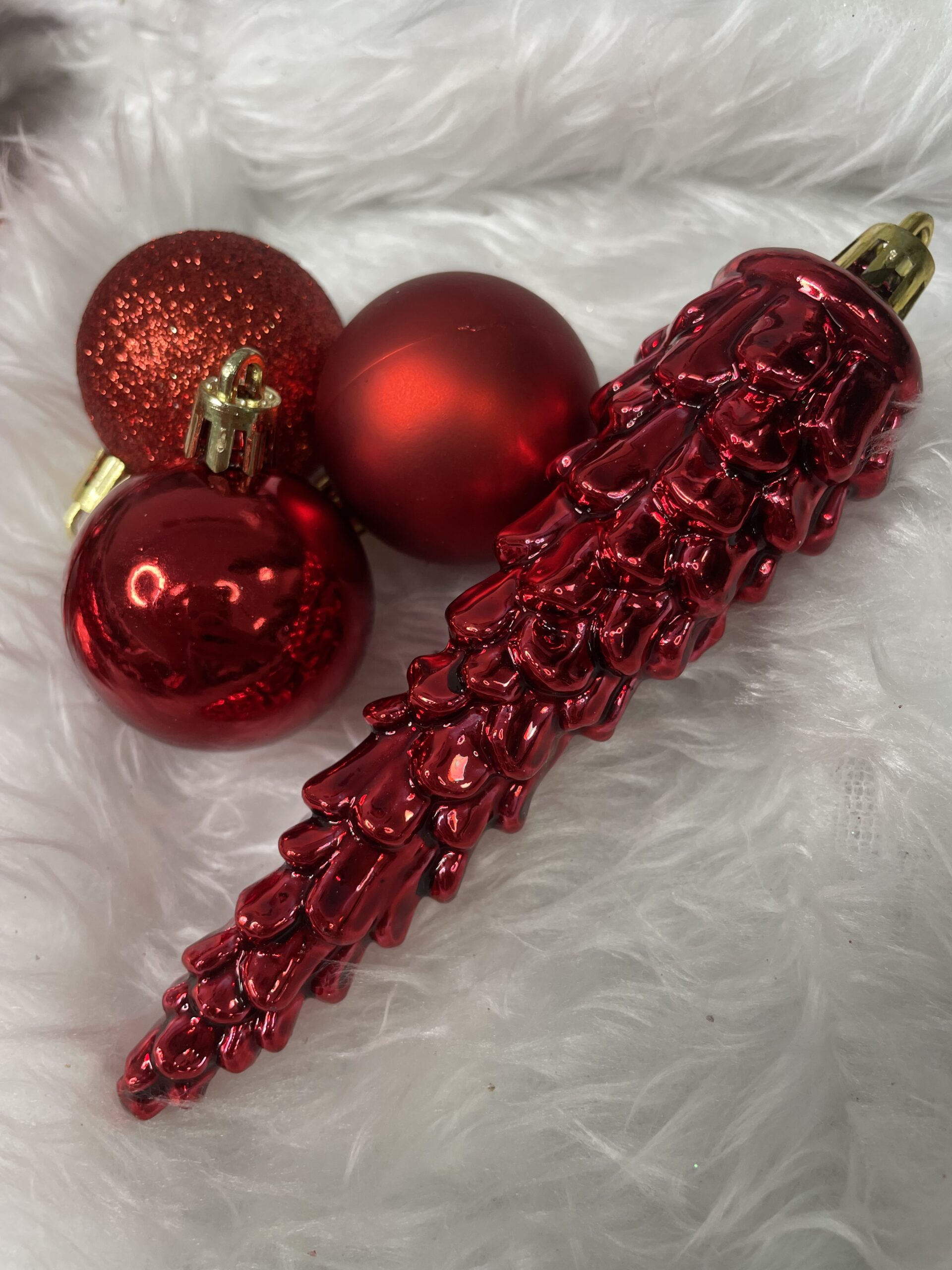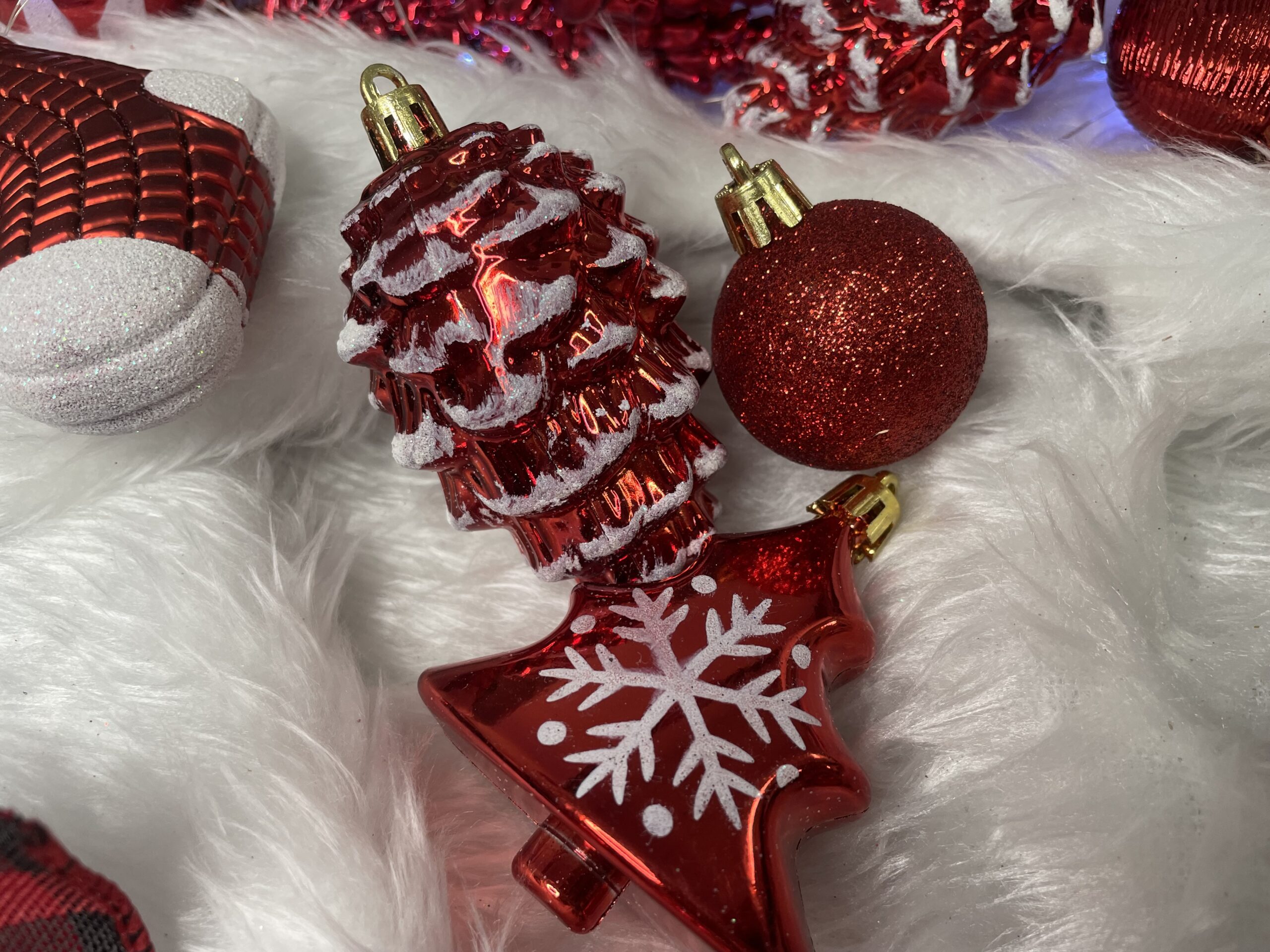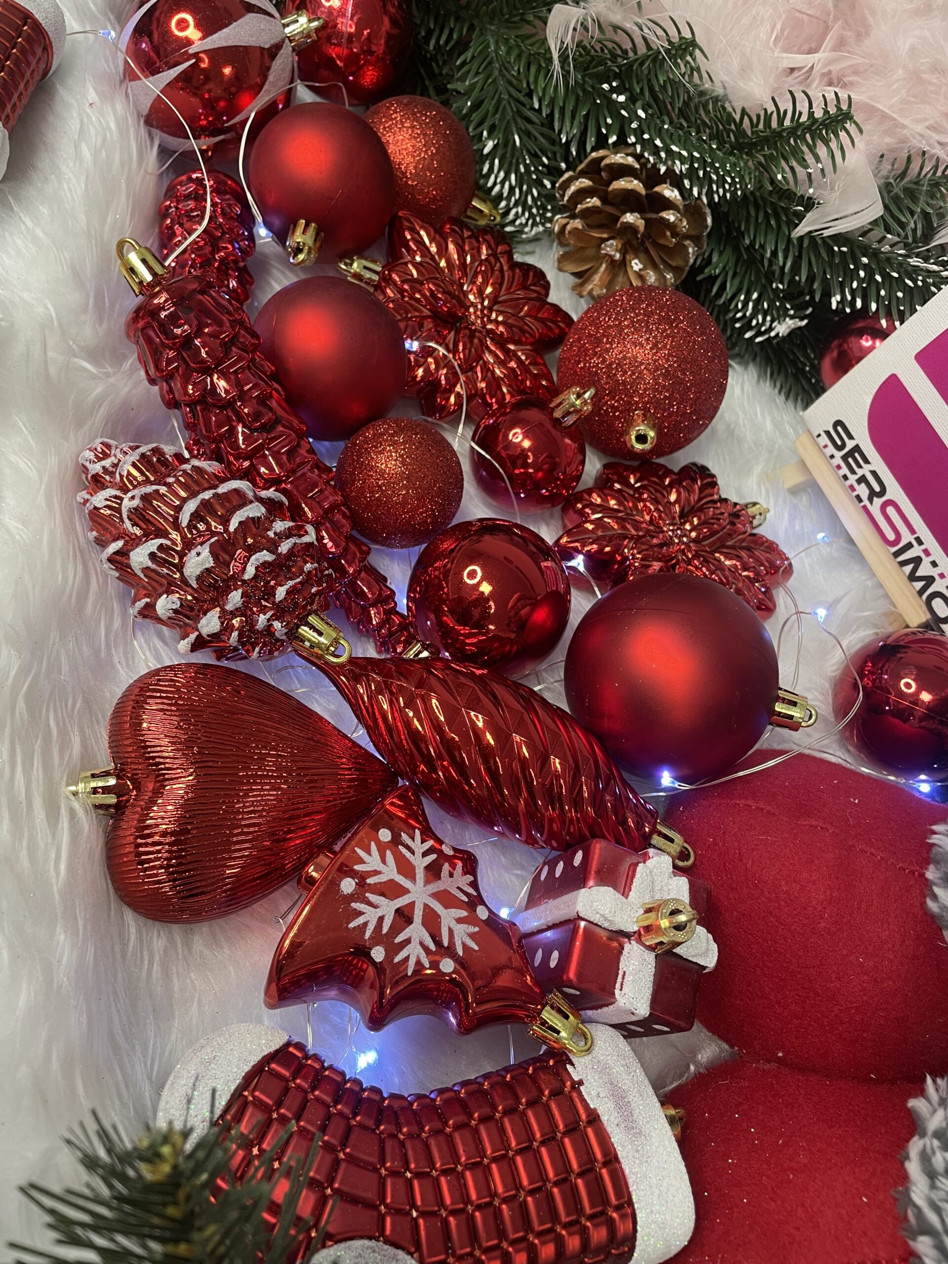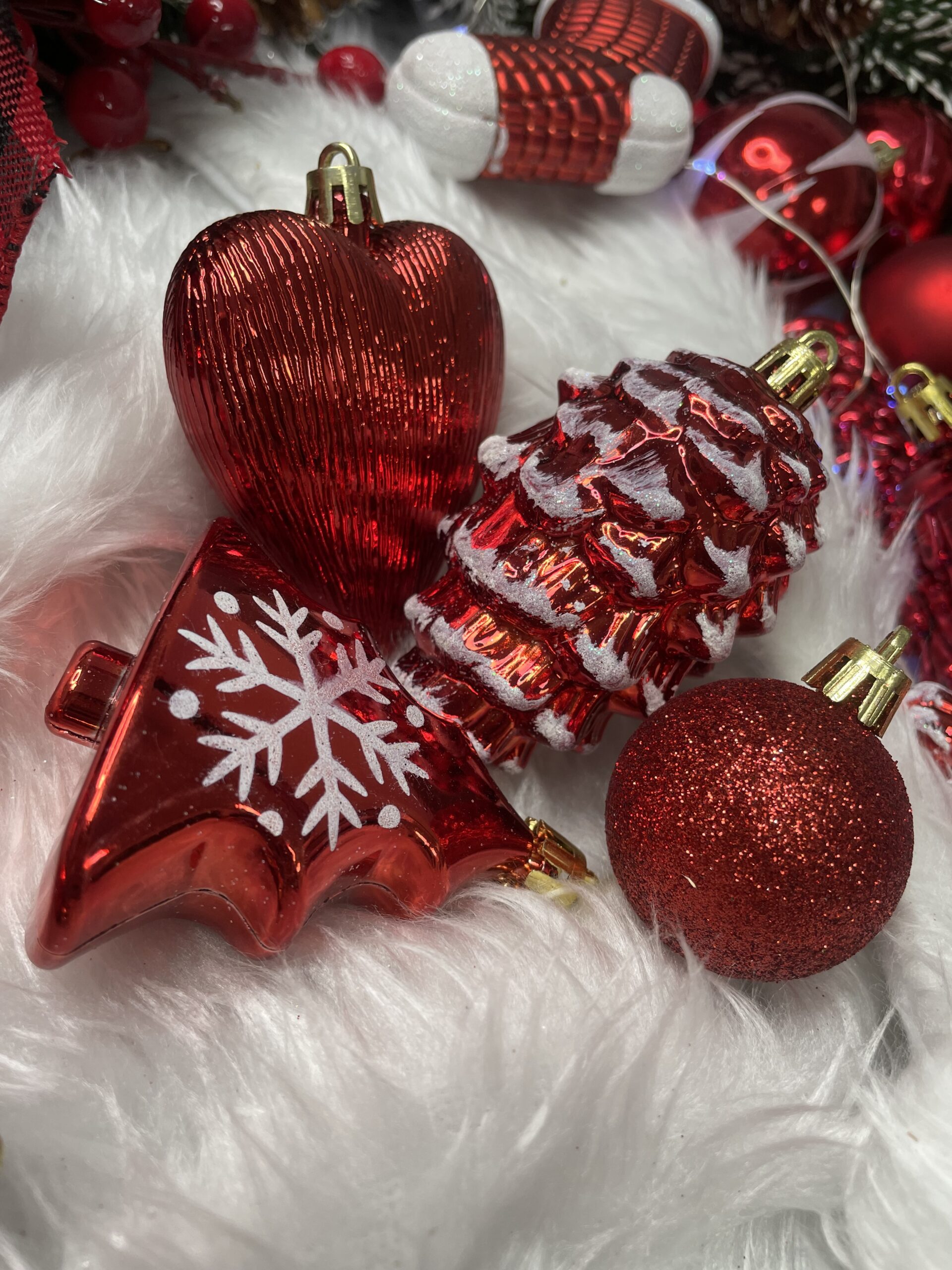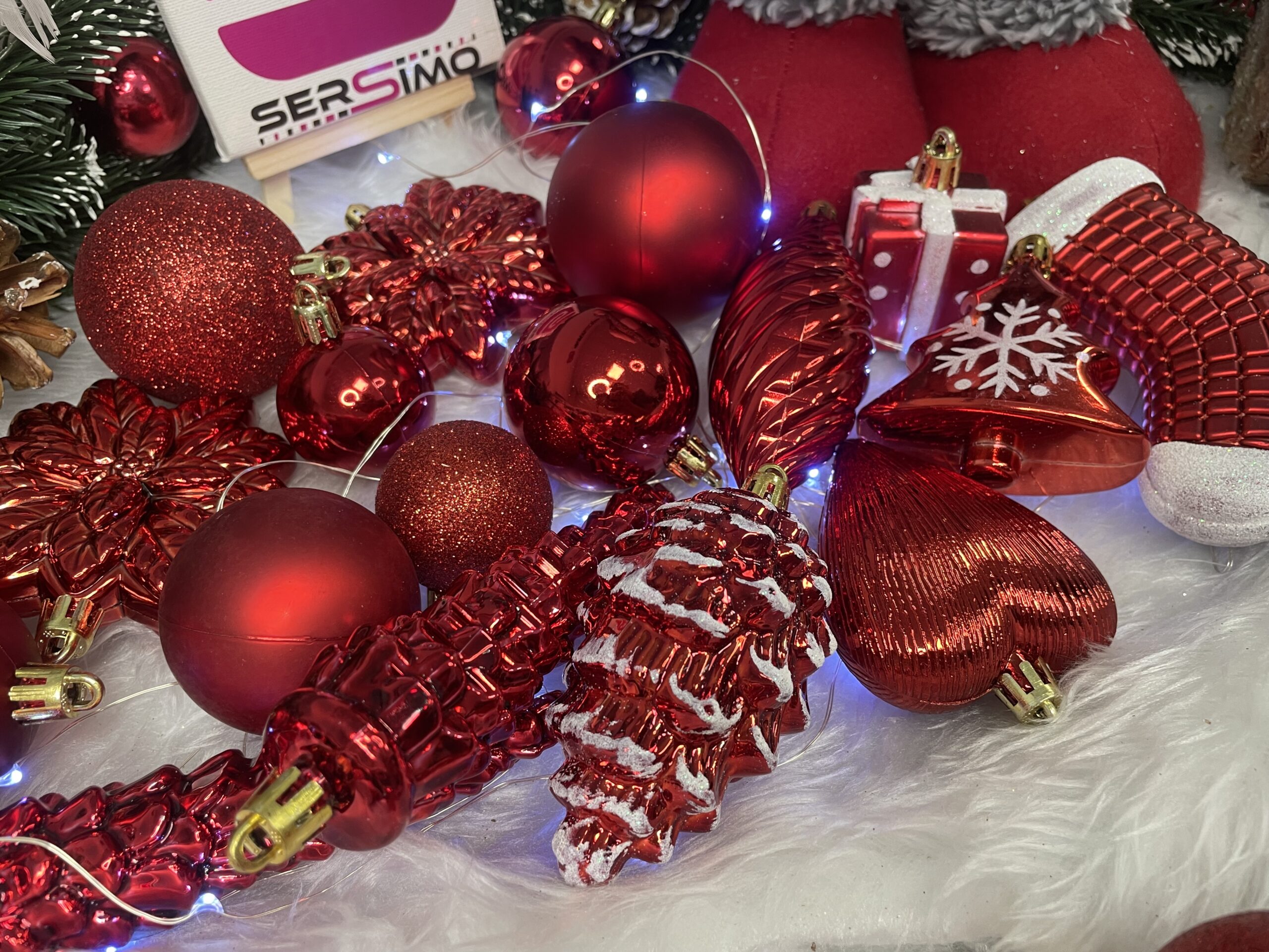 Set globuri si decoratiuni pentru brad de Craciun, 72 piese, rosu