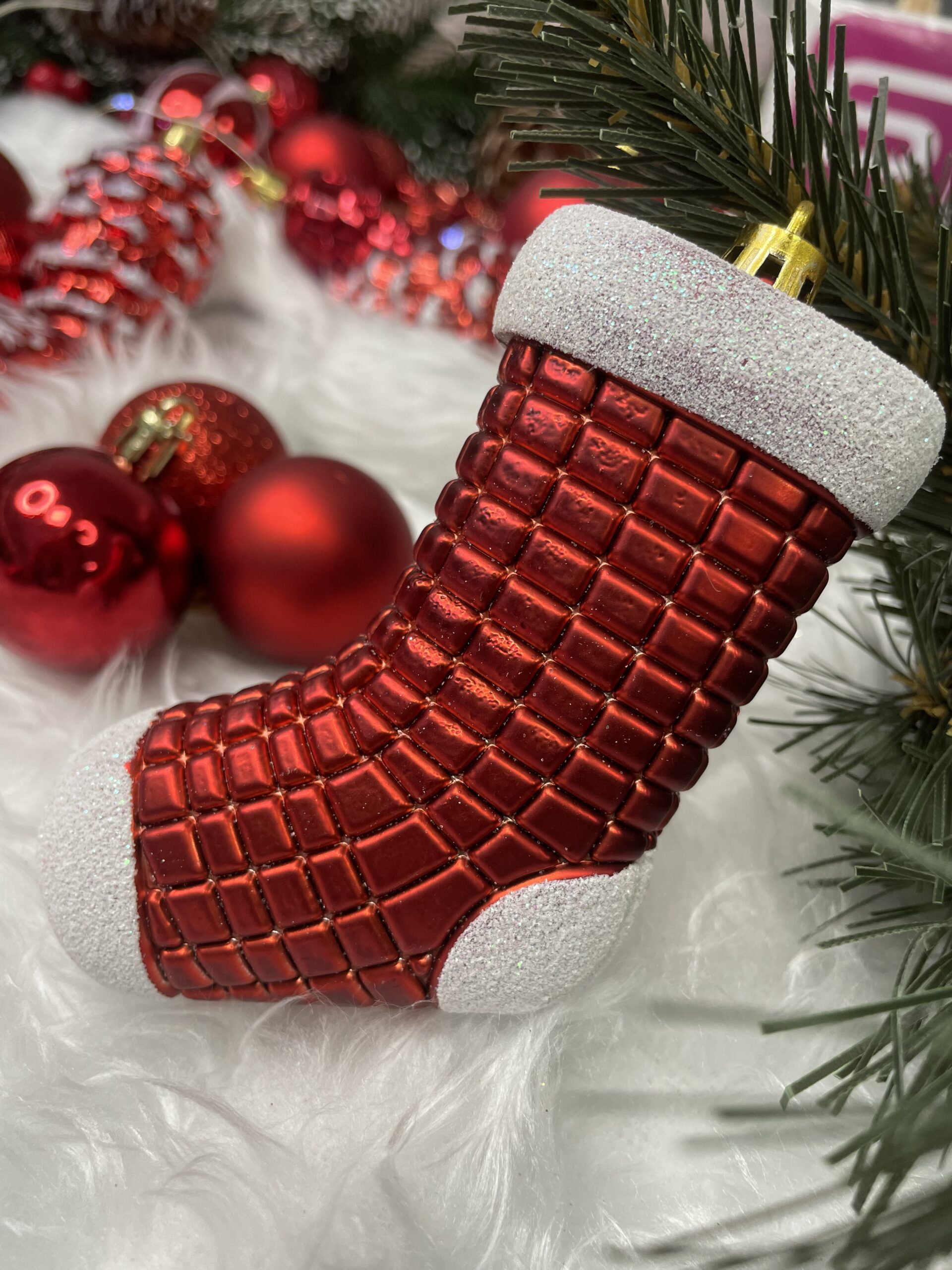 - 4 x ornamente alungite cu dungi si sclipici - 10 cm