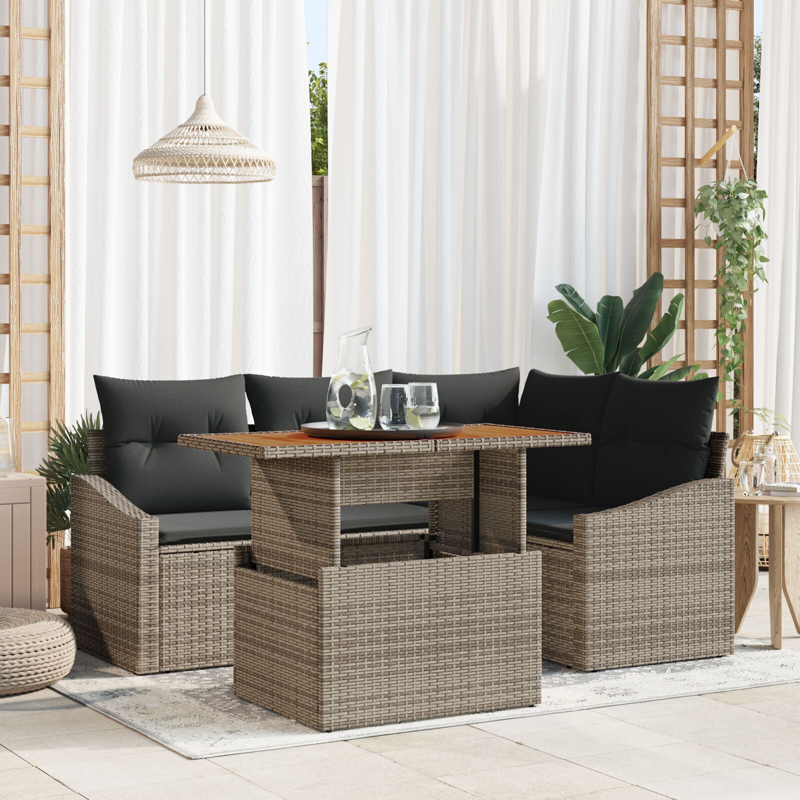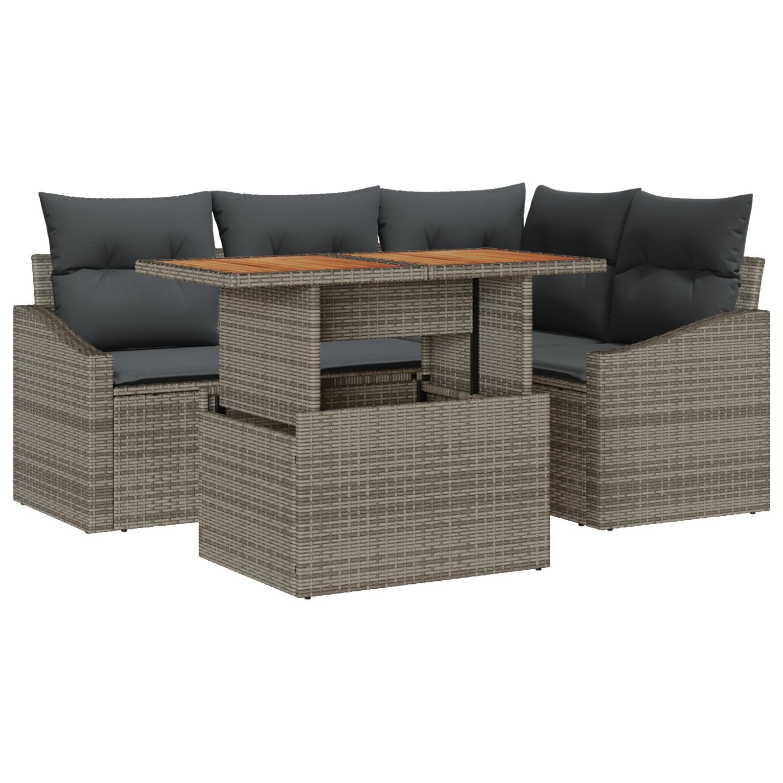 Set grădină 5 piese cu perne gri din ratan poliester acacia GartenMobel Dekor