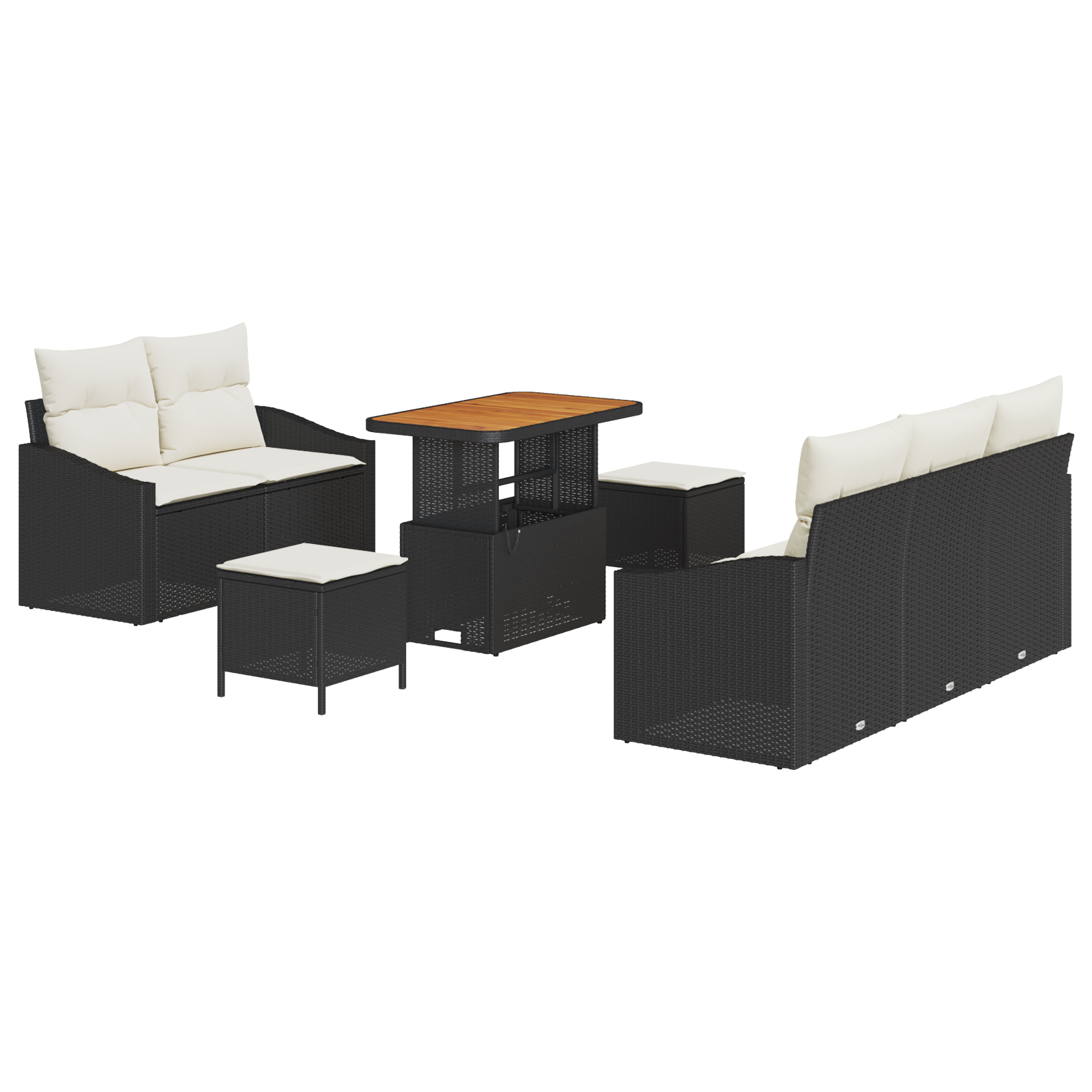 Set Grădină cu 8 piese și perne, Negru, Rattan sintetic, Acacia, Sofa grădină cu 2 locuri și depozitare & perne, Negru, Rattan sintetic, Set dining grădină cu 3 piese și perne, Negru, Rattan sintetic, Acacia GartenMobel Dekor