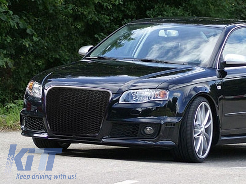Set grilă tip RS4 în jurul farurilor de ceață potrivit pentru Audi A4 B8 sedan, break 2007-2011, lac negru Performance AutoTuning
