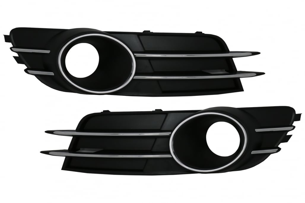 Înlocuiește rapid grilele deteriorate și redă aspectul original al mașinii cu acest set grile bară față pentru Audi A6 C7 (4G). Designul negru cu inserție crom oferă un look elegant, iar decupajele dedicate asigură compatibilitatea cu proiectoare și sistemul de Cruise Control, pentru o montare fără compromisuri.