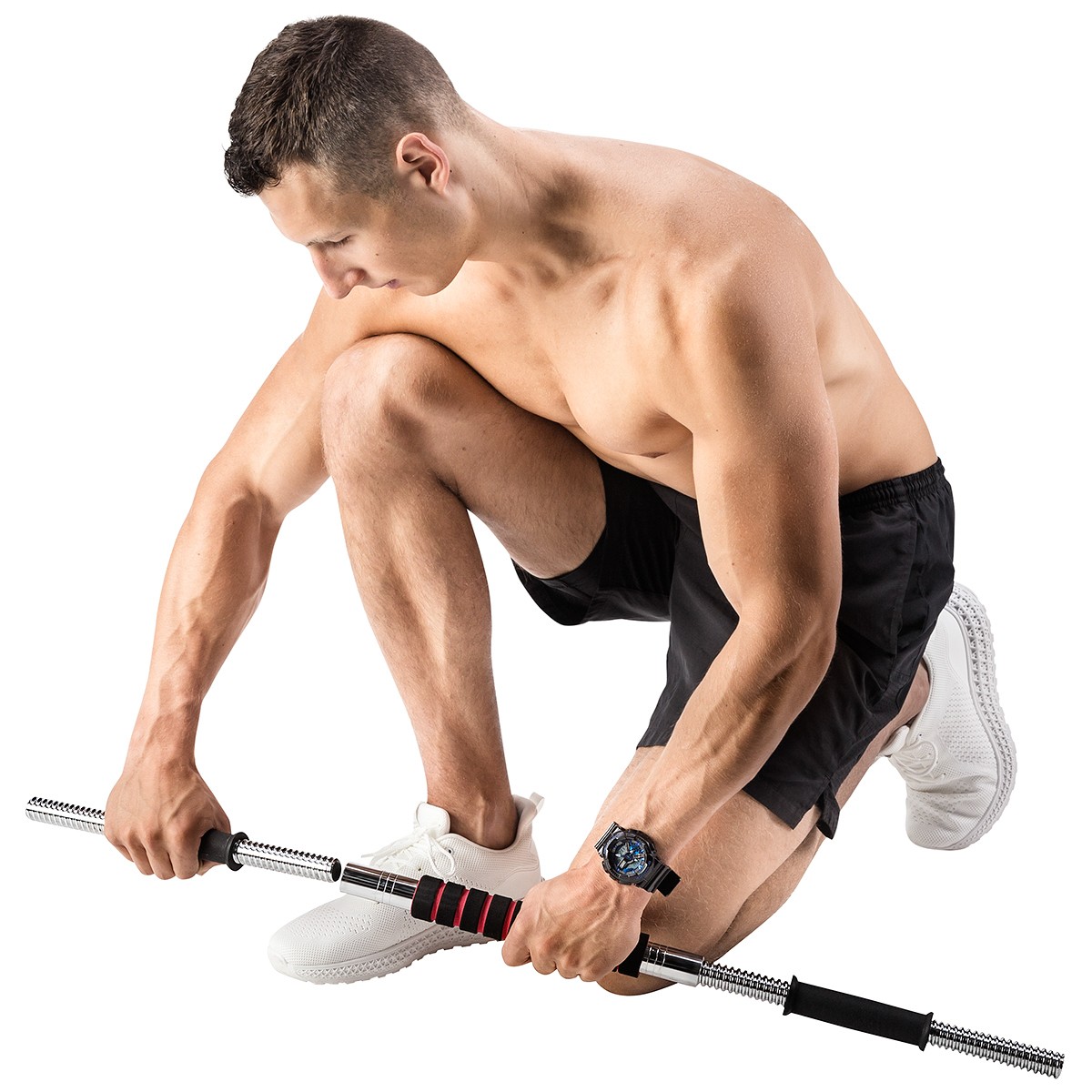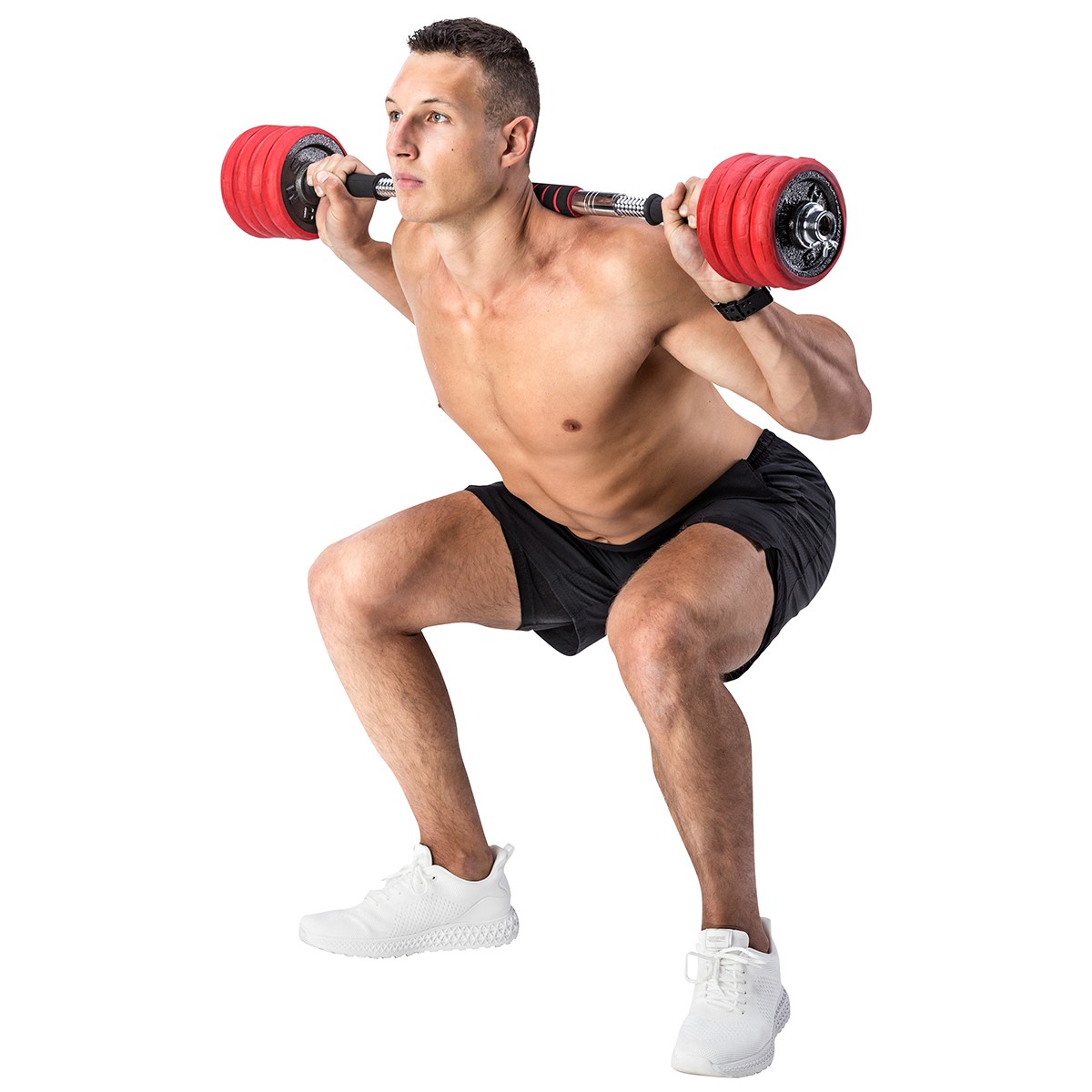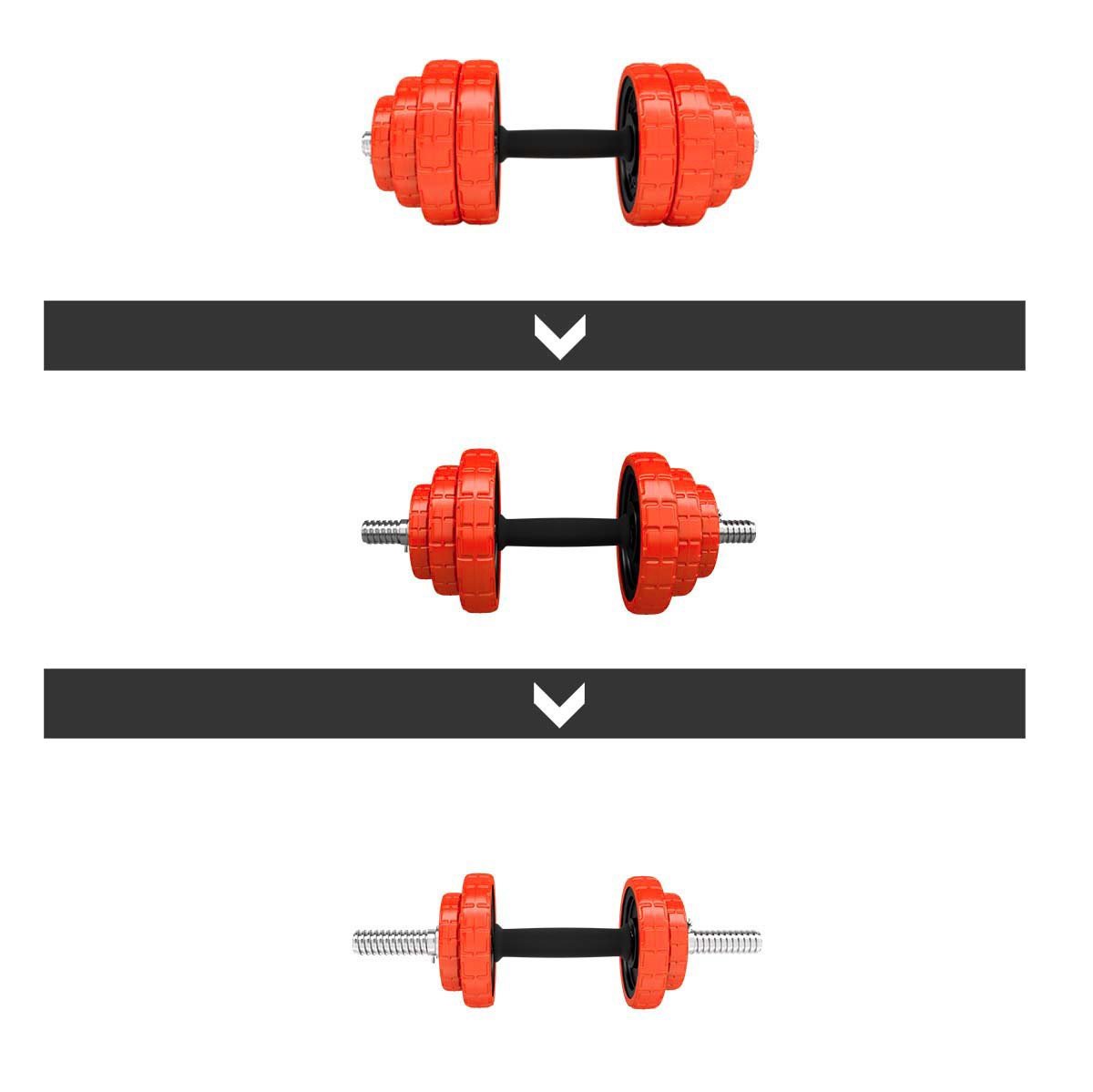 Exista, de asemenea, cauciuc pe manerele halterelor, ceea ce garanteaza o prindere ferma si confortabila. Bara de conectare este utilizata pentru a crea bara de haltere, aceasta este acoperita cu un burete, care este foarte util, de exemplu, in timpul ghenoflexiunilor, deoarece datorita acestuia nu exista disconfort cauzat de presiunea barei pe spate.