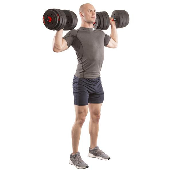 Antrenamentul cu greutati, cu incarcatura interschimbabila este esential pentru orice sala de fitness. De aceea, modelul SGP40 HMS nu poate lipsi din sala de fitness. Acest set este compus din 2 gantere, care se pot uni astfel incat sa formeze o haltera.
