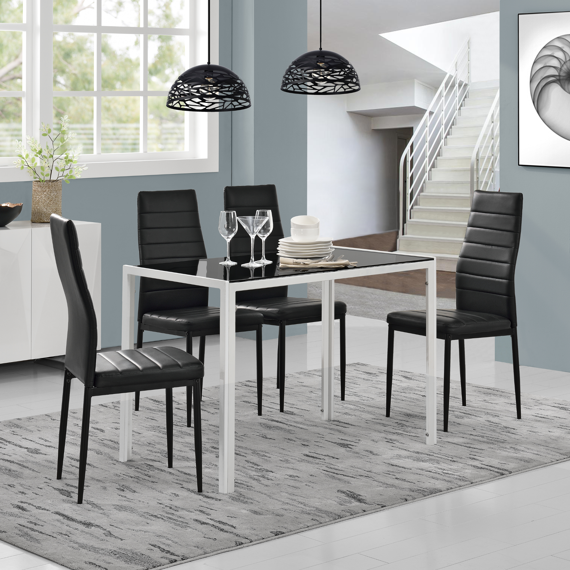 Set HamburgB masa cu 4 scaune otel sticla imitatie piele negru/alb [en.casa] HausGarden Leisure