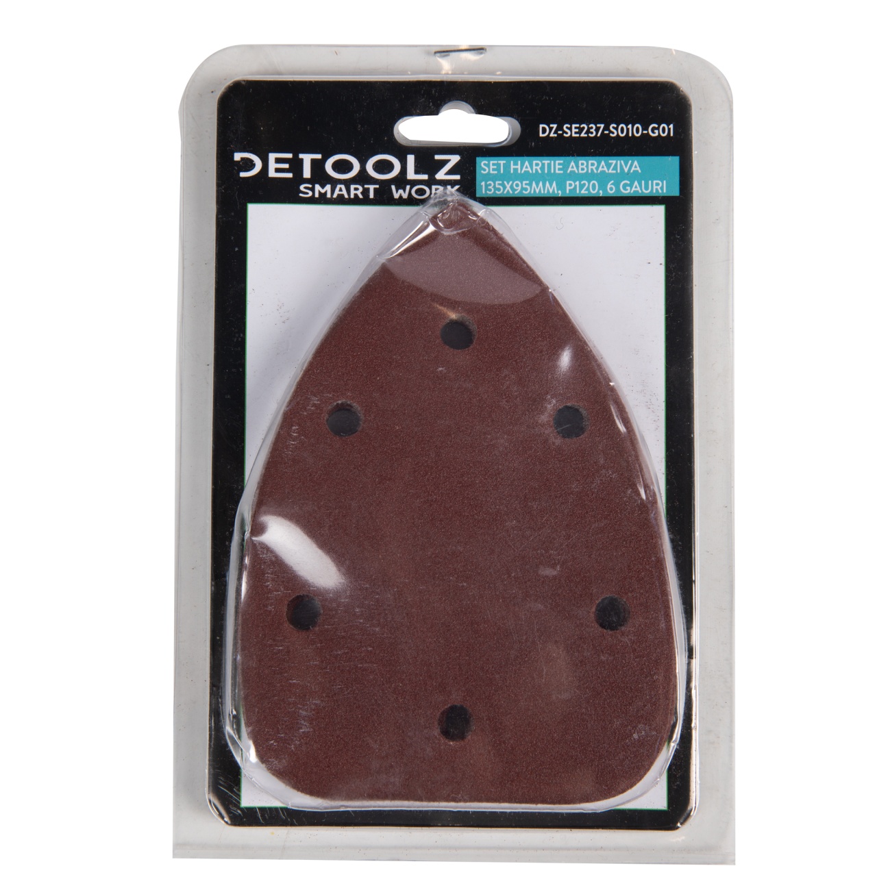 Set hârtie abrazivă P120 135x95 mm, 6 găuri, Detoolz, 10 bucăți
