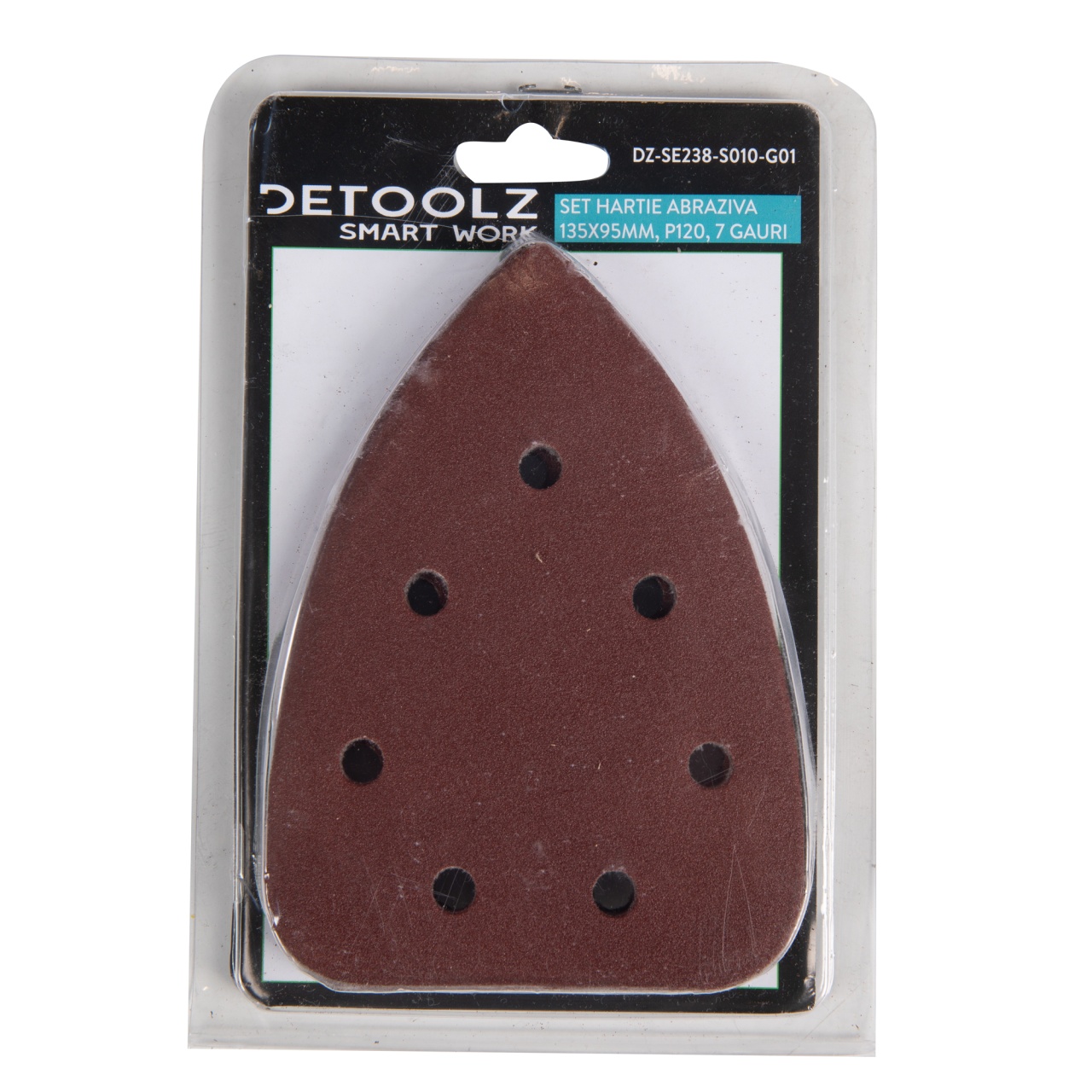Set hârtie abrazivă P120 135x95 mm cu 7 găuri, 10 bucăți Detoolz
