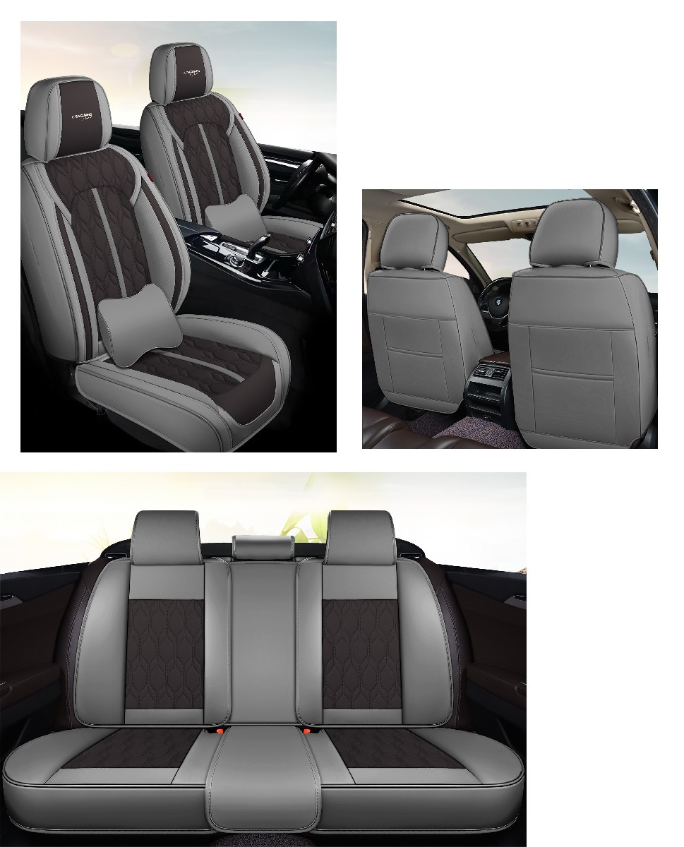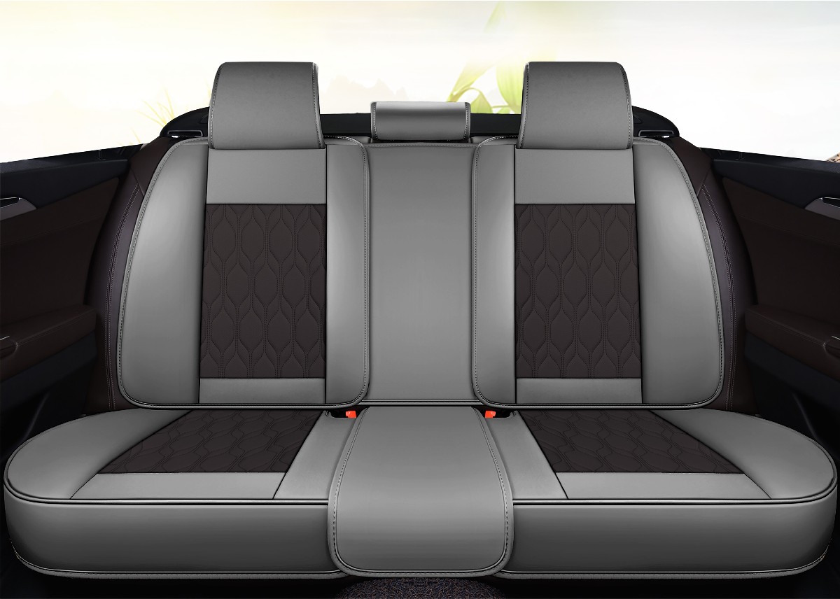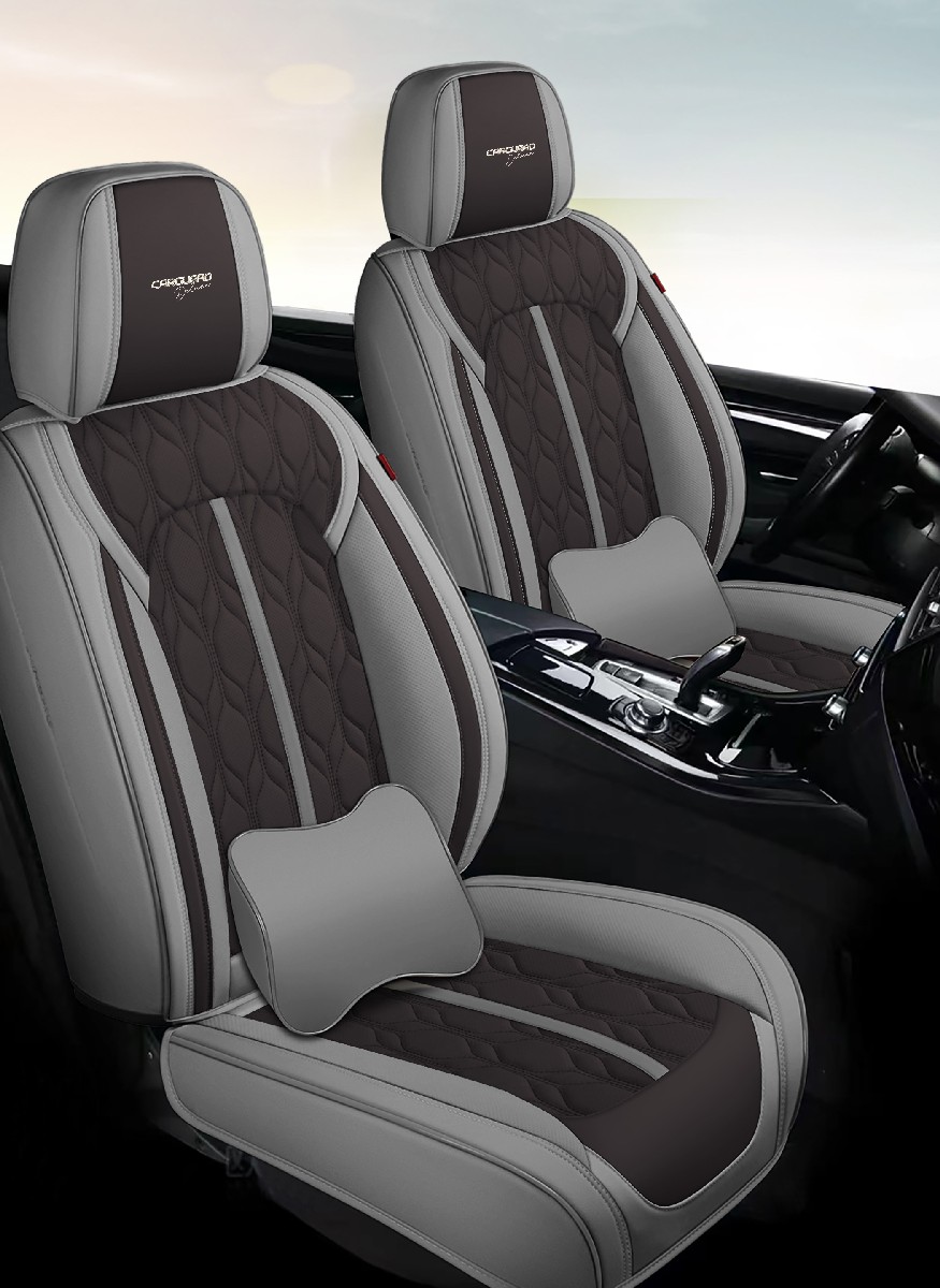 Set huse scaune auto 5 locuri Carguard Deluxe, piele eco perforată gri-negru