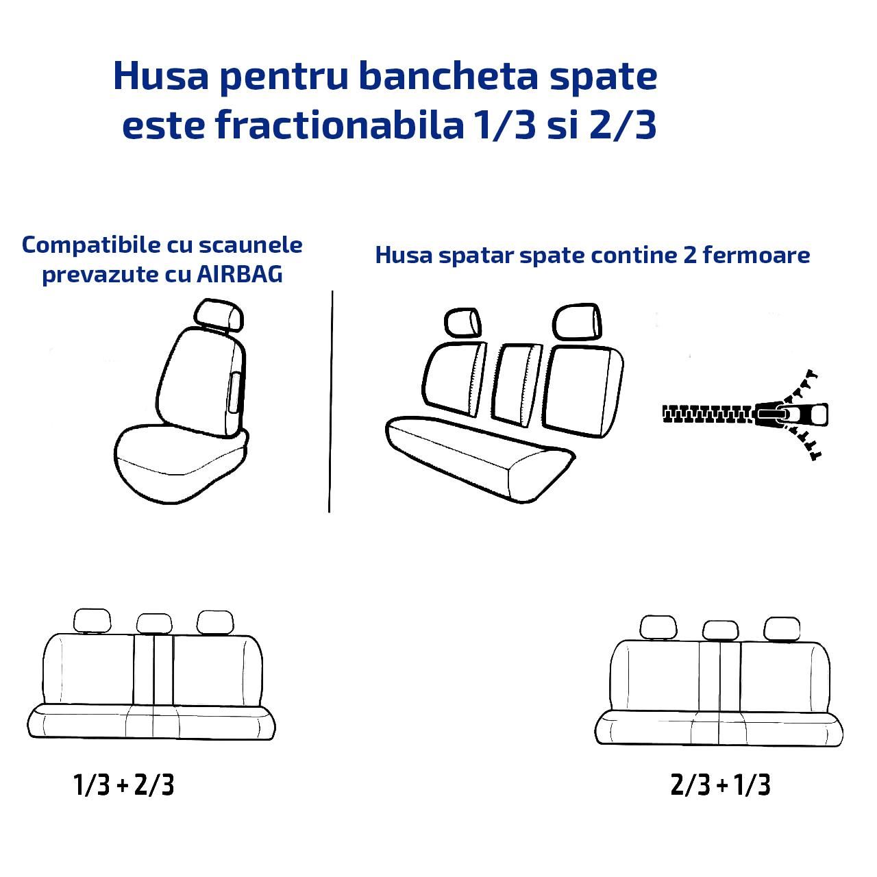 Compatibilitate bancheta rabatabila: Model cu fermoar pentru banchete rabatabile fractionate 1/3 si 2/3.