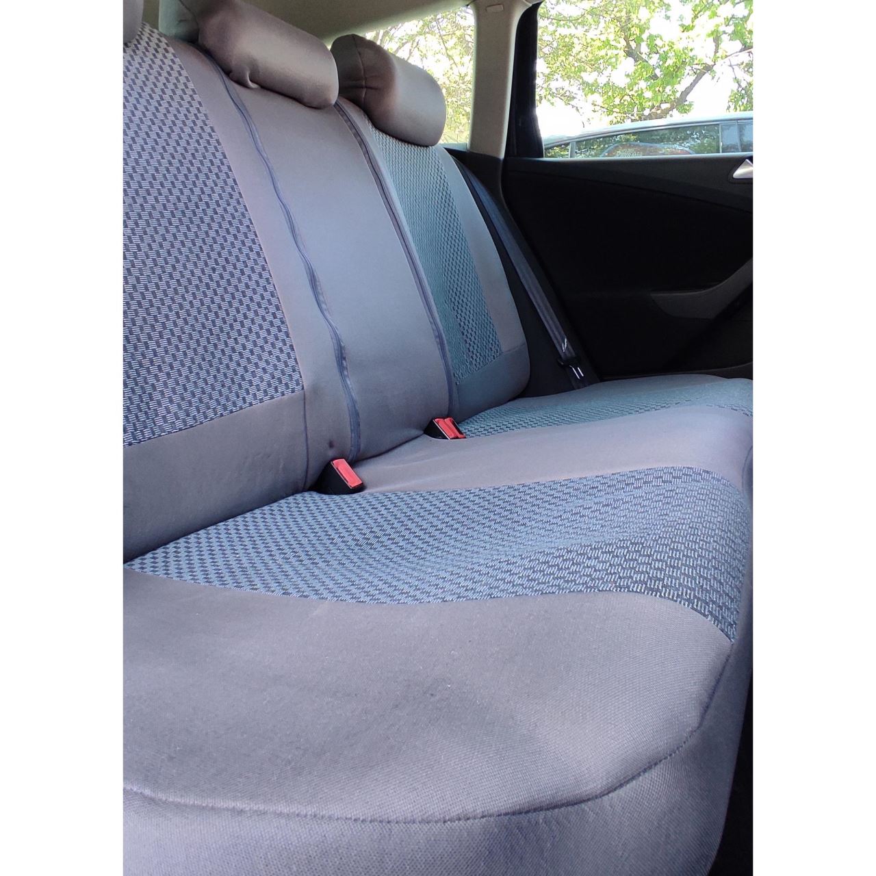 Set Huse Scaune Auto DeluxeBoss, stofa cu piele ecologica, pt bancheta rabatabila fractionata, negru cu gri, 11 bucati Automobile ProTravel