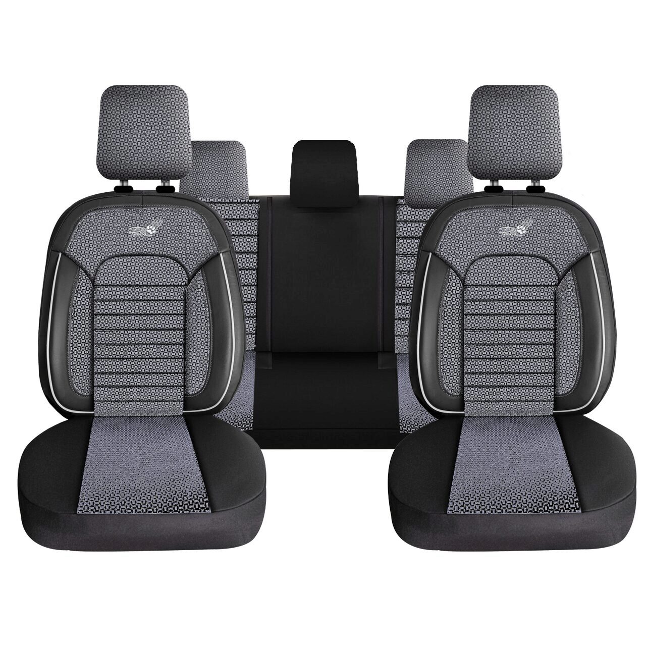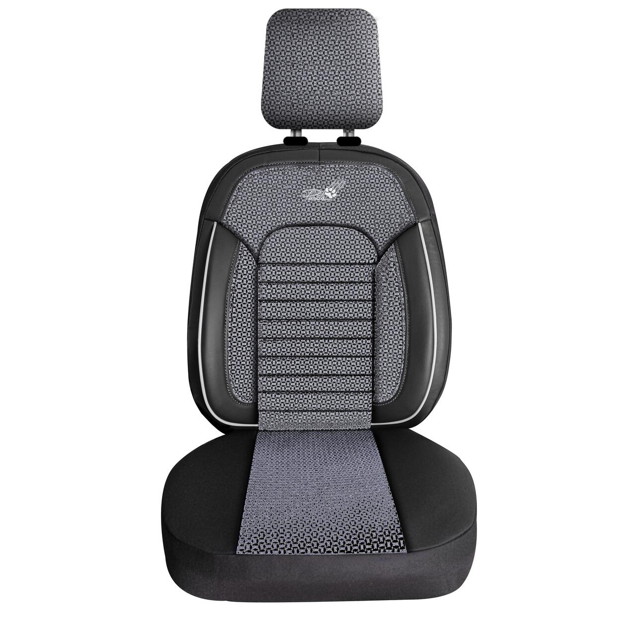 Set Huse Scaune Auto Panda Belek, material textil cu piele ecologica, cu fermoare pentru bancheta rabatabila, gri cu negru, 11 piese Automobile ProTravel