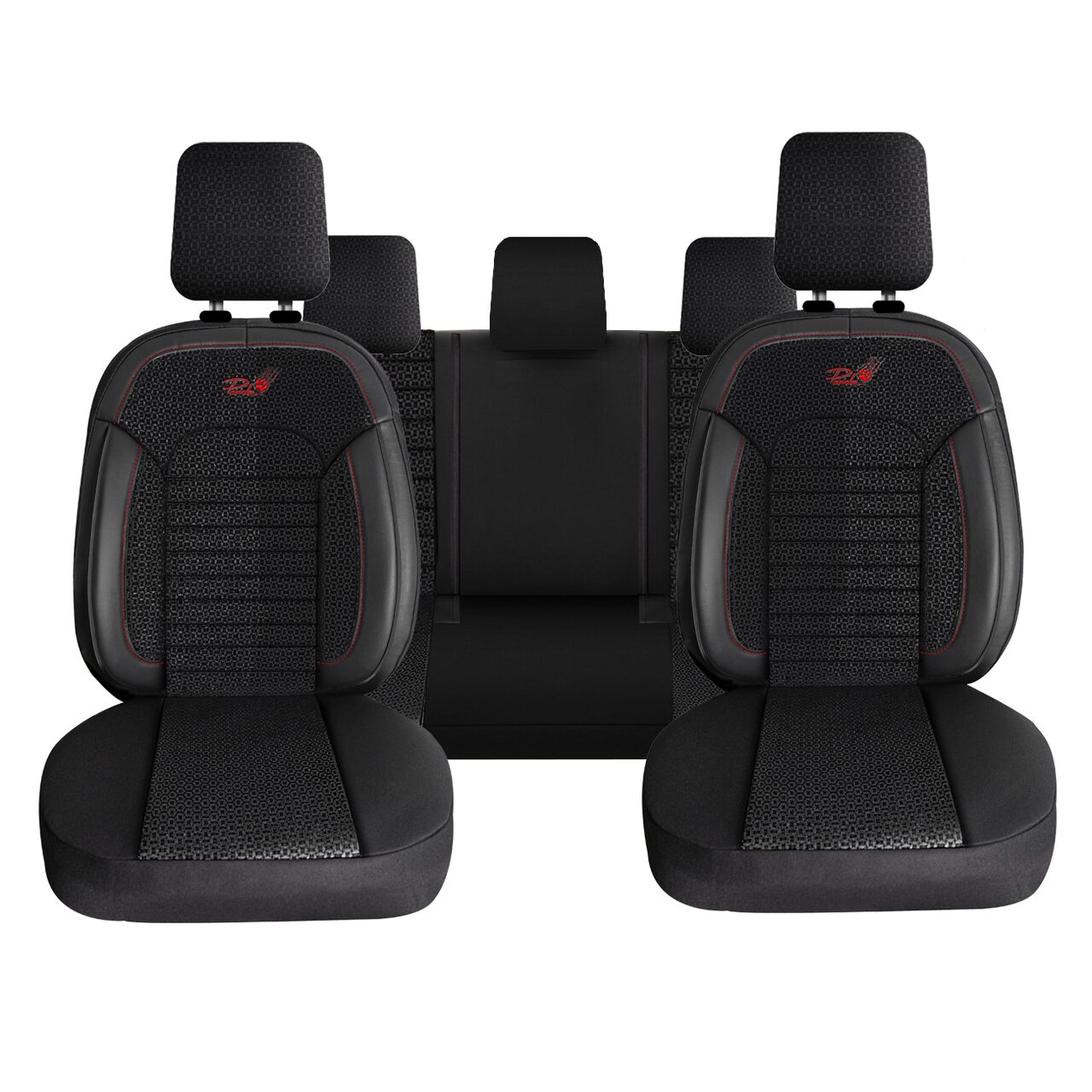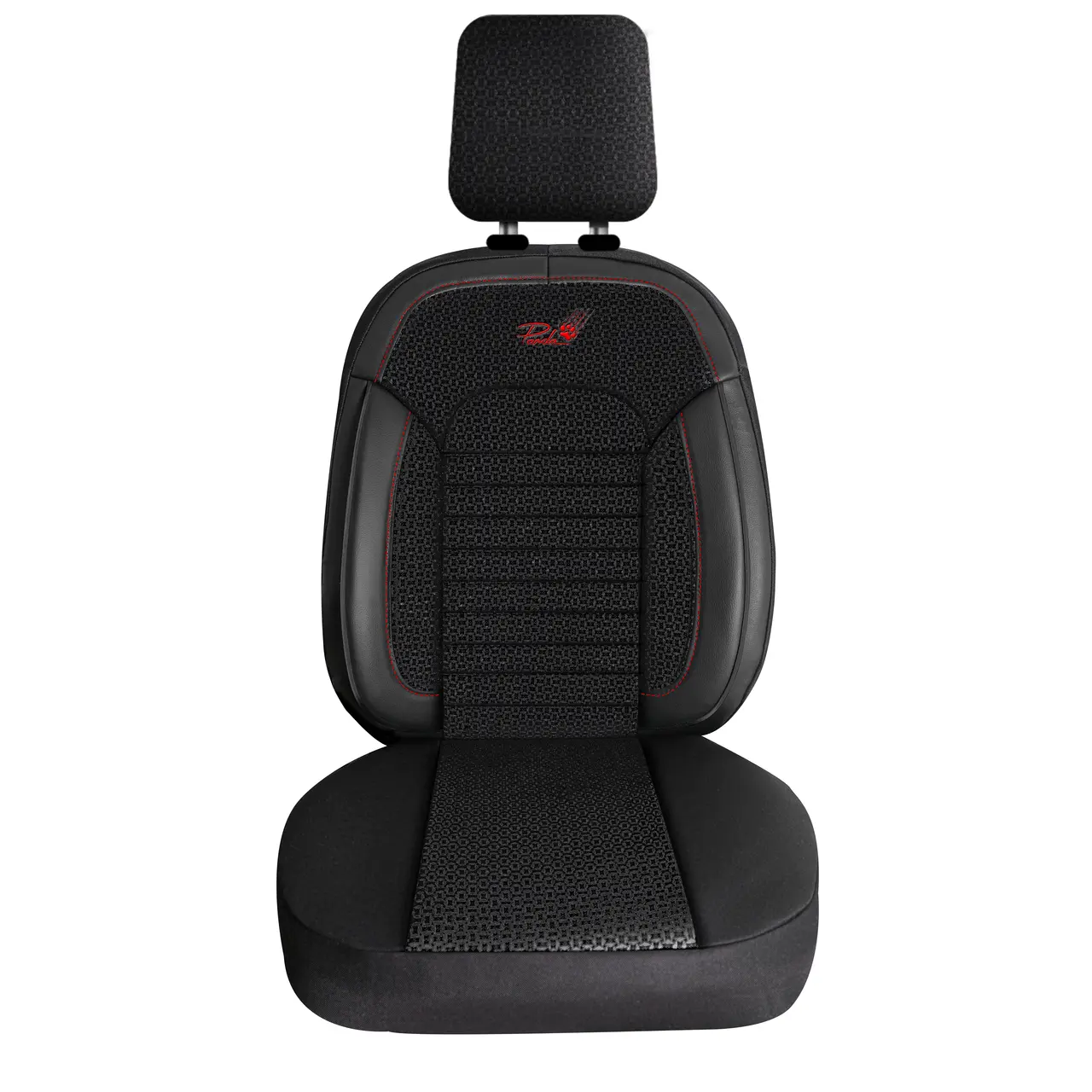 Set huse scaune auto Panda Belek, negre cu insertii rosii, 11 piese