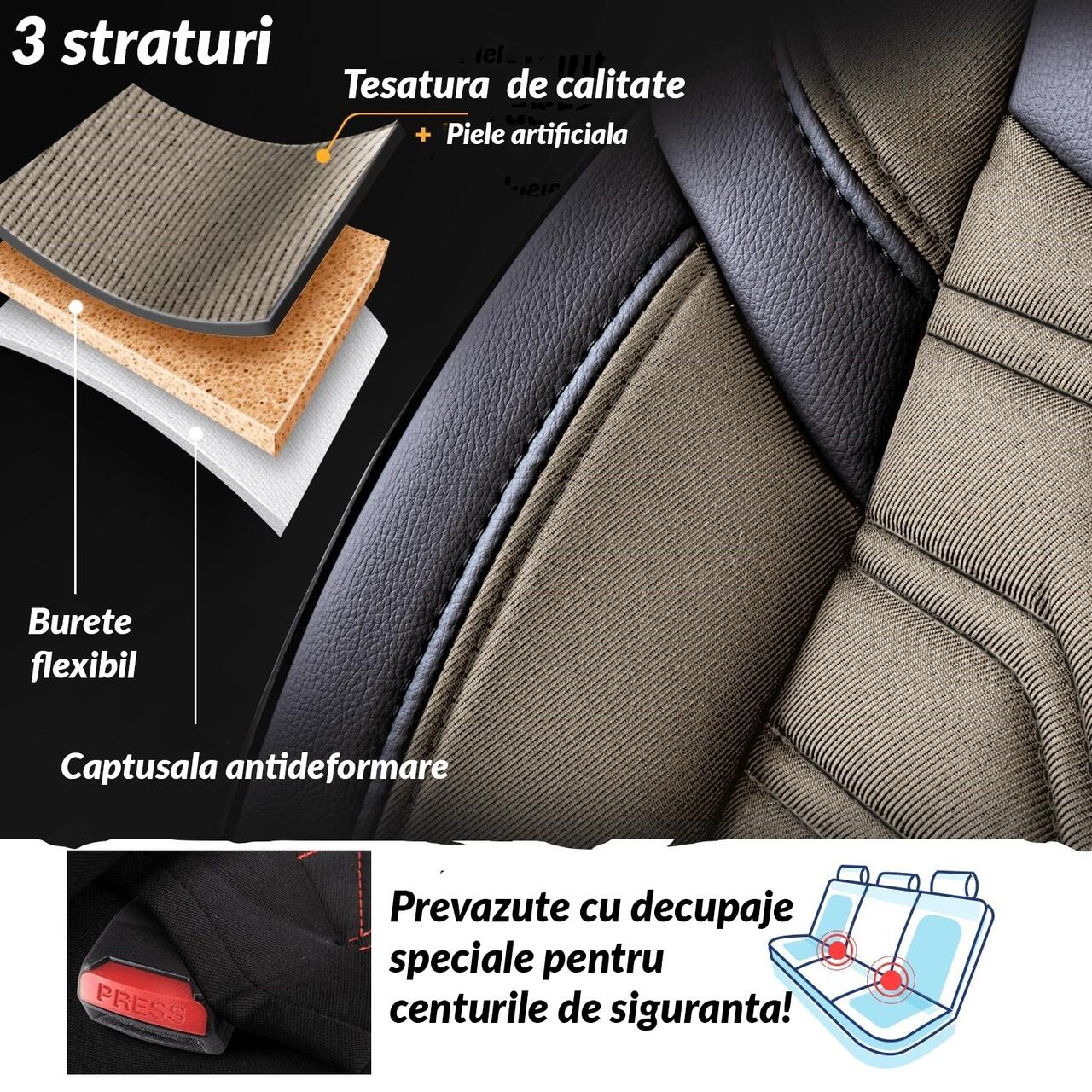Set Huse Scaune Auto Panda Berlin, bej - negru, 11 piese Automobile ProTravel