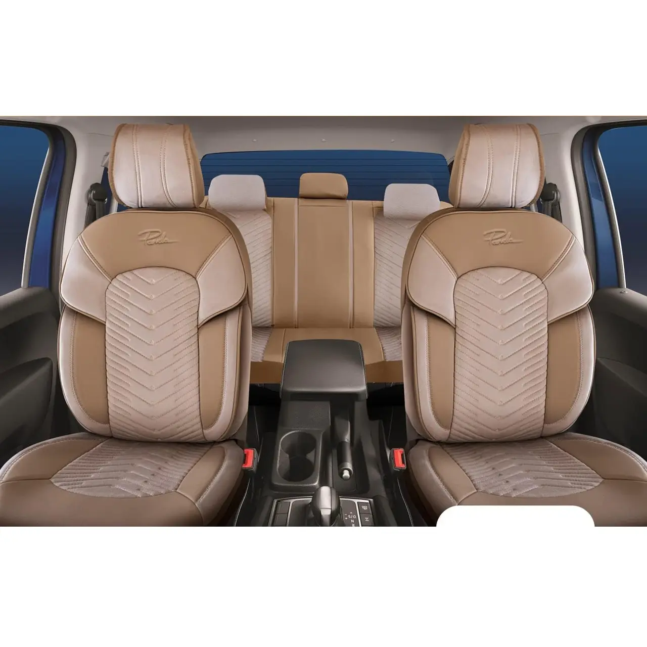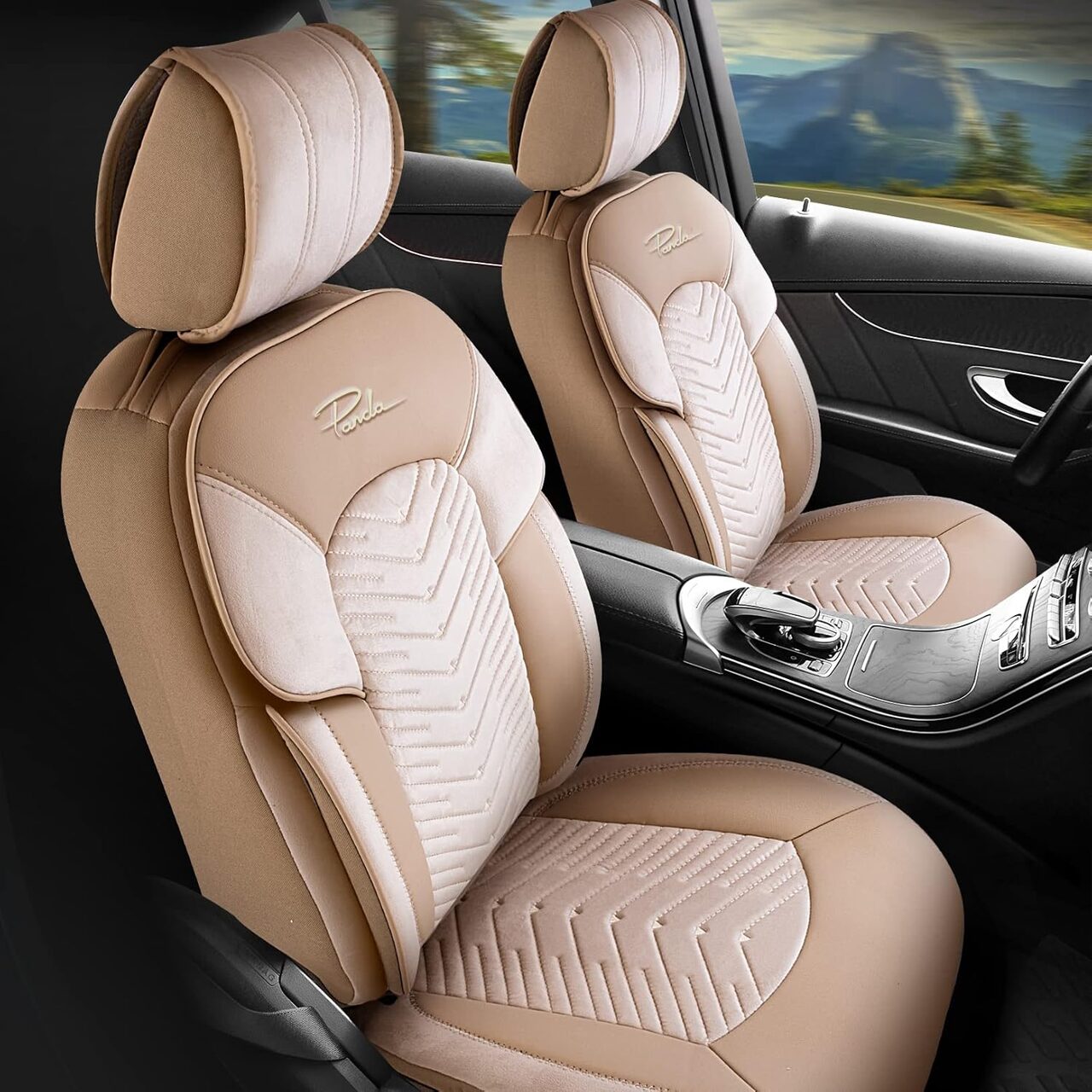 Set Huse Scaune Auto Panda Dubai, material textil cu piele ecologica, cu fermoare pentru bancheta rabatabila, bej, 11 piese Automobile ProTravel
