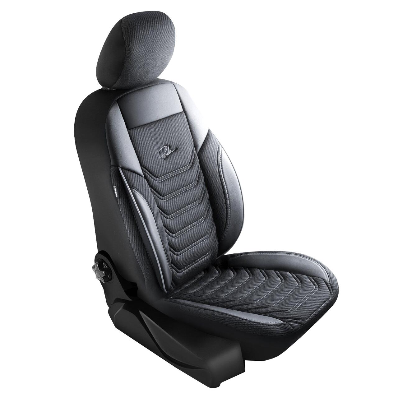 Set Huse Scaune Auto Panda Florida, cu fermoare pentru bancheta rabatabila, negru gri, 11 piese Automobile ProTravel