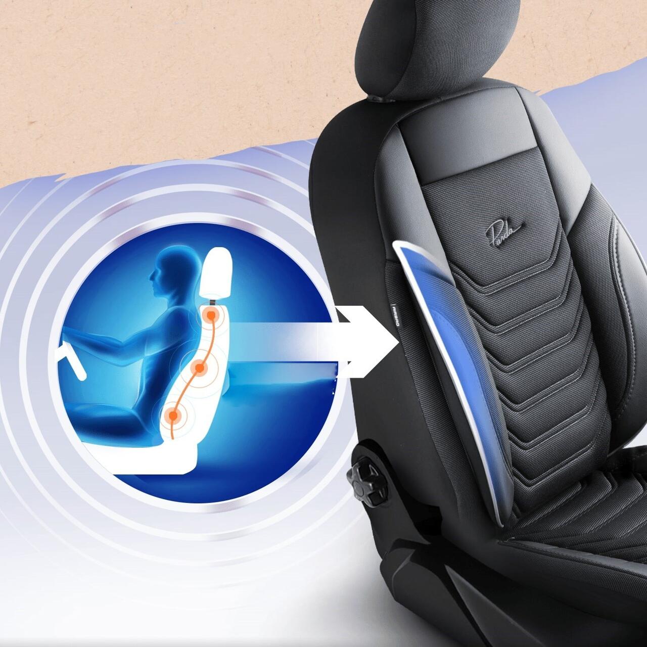 Husele pentru scaune PANDA sunt compatibile cu toate tipurile de autoturisme si au design ortopedic. Cusatura laterala este special conceputa pentru a permite deschiderea airbag-urilor laterale din scaune. Husa bancheta spate este compatibila cu elementele centurilor de siguranta.