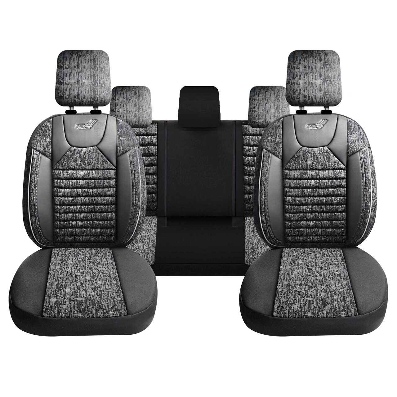 Set Huse Scaune Auto Panda Kas, material textil cu piele ecologica, cu fermoare pentru bancheta rabatabila, gri cu negru, 11 piese Automobile ProTravel