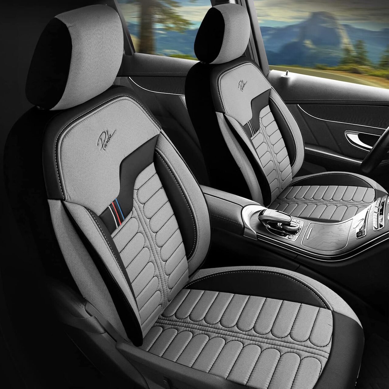 Set huse scaune auto Panda Londra, 11 piese, gri deschis-negru