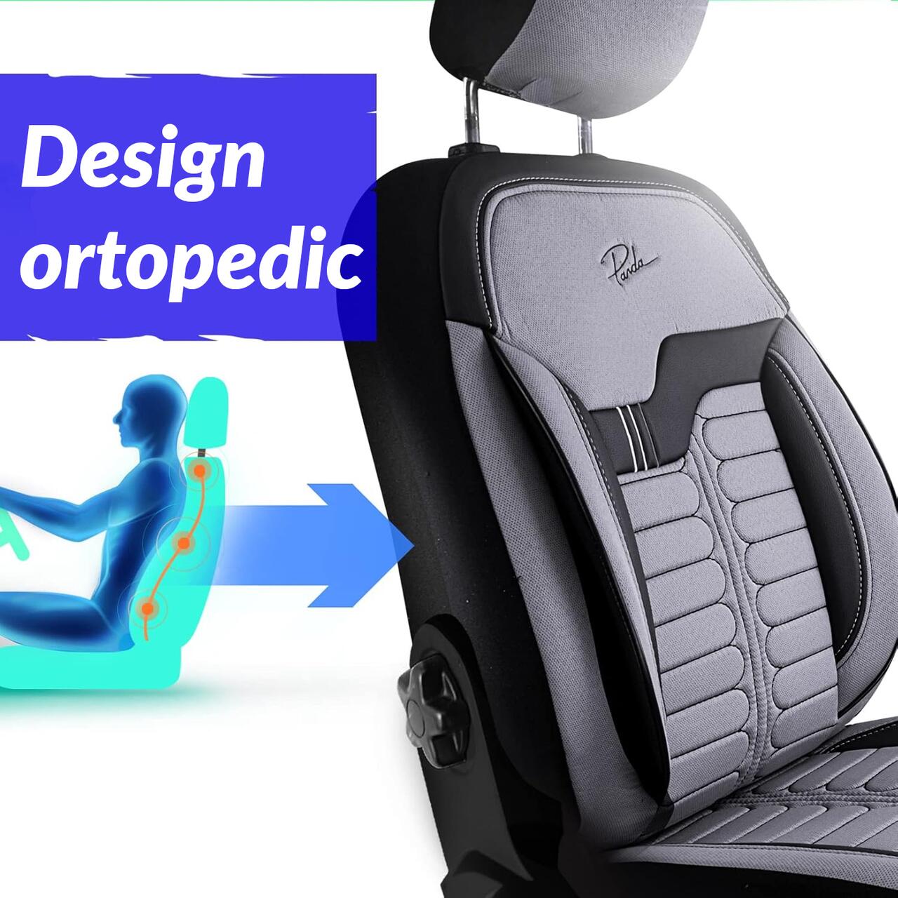 Ofera interiorului masinii un aspect ingrijit si mai mult confort cu acest set de huse scaune auto Panda Londra. Modelul este realizat pentru a se potrivi pe majoritatea autoturismelor, avand un design modern in nuante de gri deschis si negru, cu finisaj placut la atingere si sustinere buna in timpul condusului.