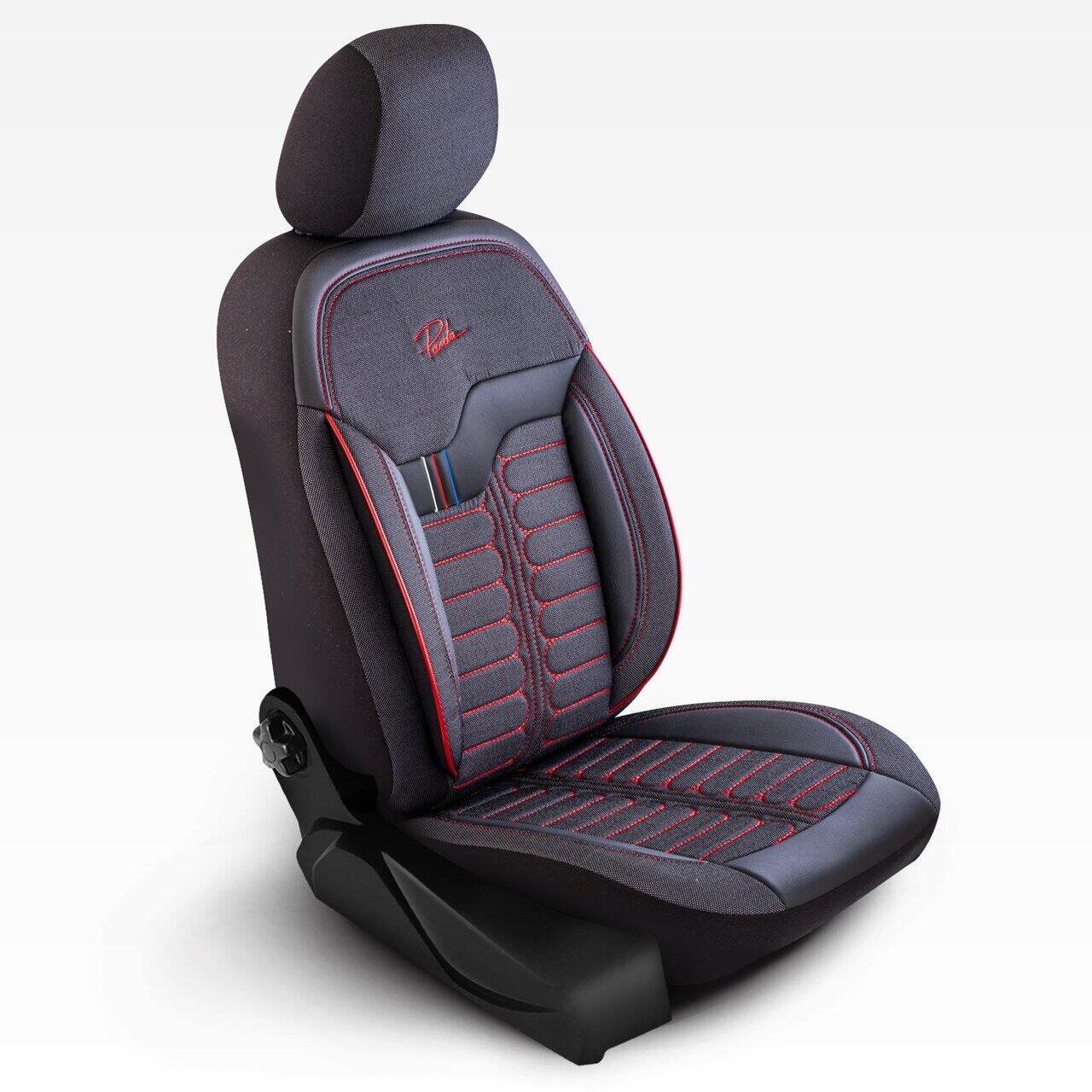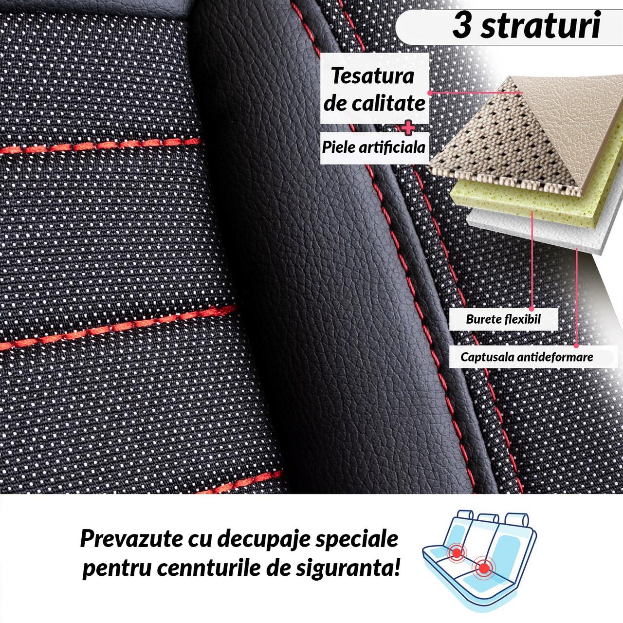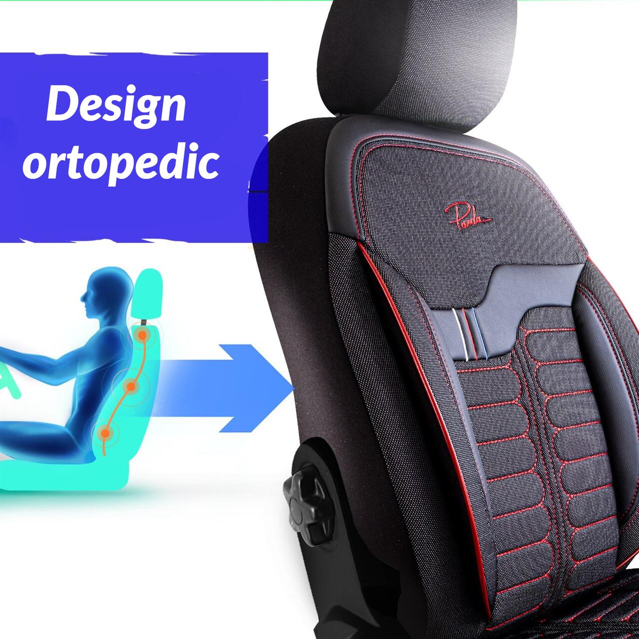 Set huse scaune auto Panda Londra, rabatabile, negru cu cusatura rosie, 11 piese