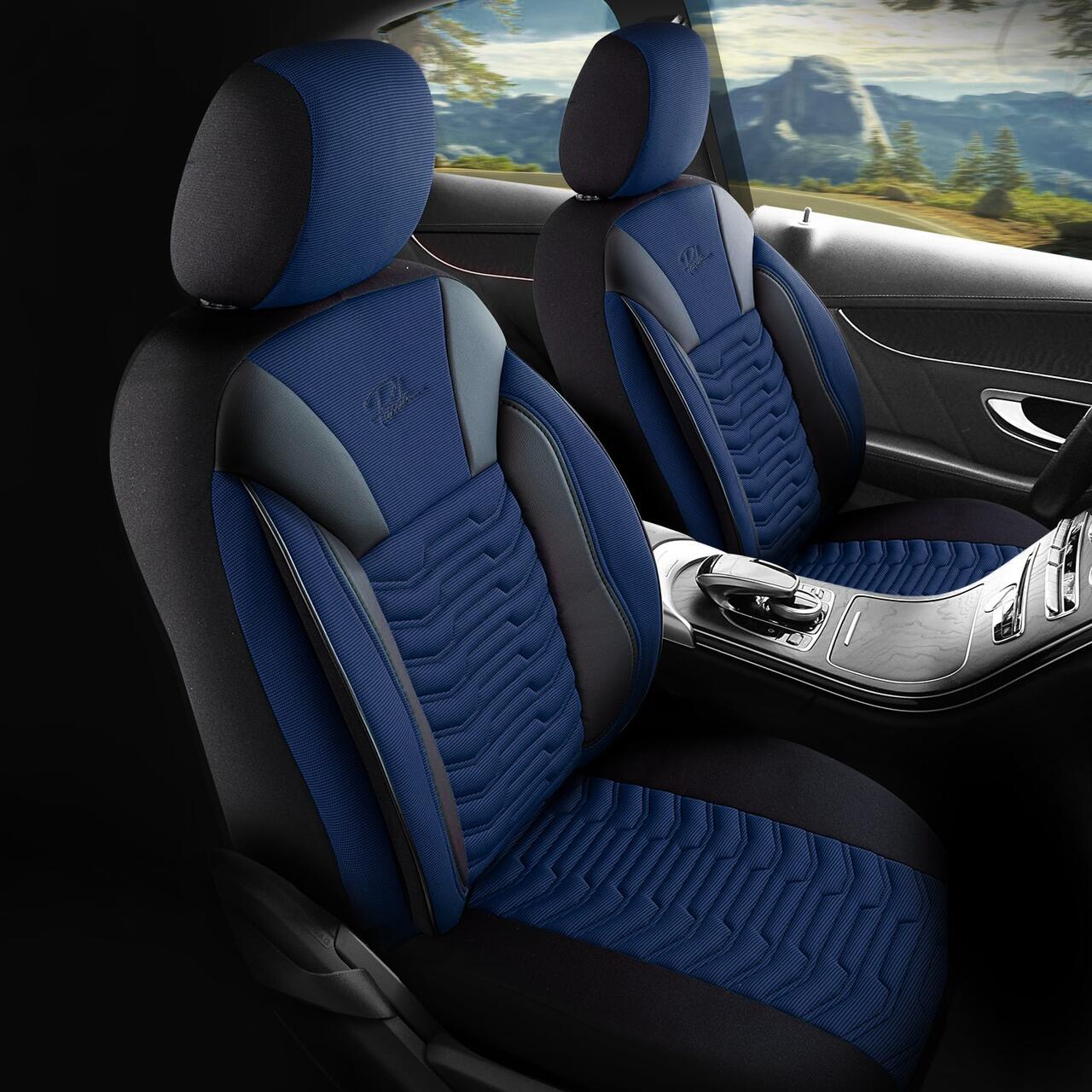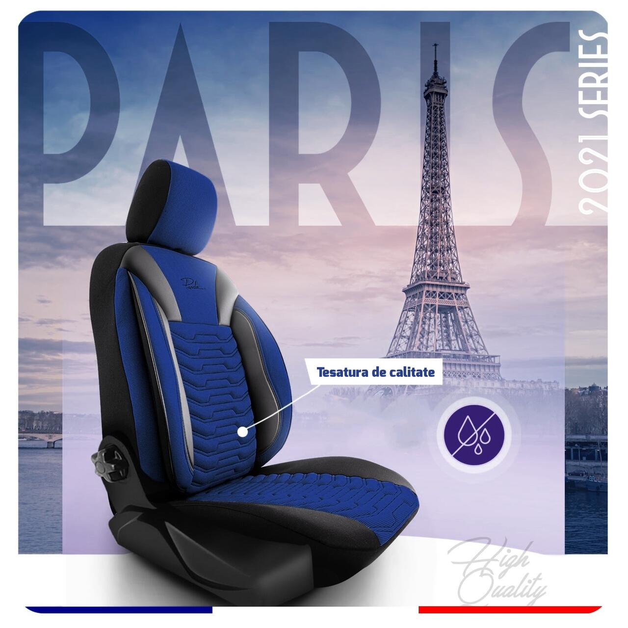 Set huse scaune auto Panda Paris, albastru-negru, 11 piese