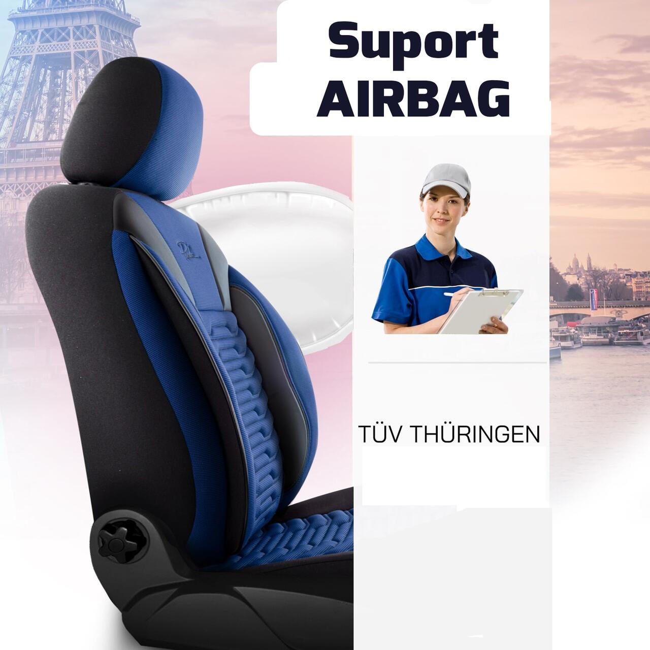Reda un aspect modern interiorului masinii tale cu acest set huse scaune auto Panda Paris, in combinatie eleganta albastru-negru. Conceput pentru compatibilitate cu majoritatea autoturismelor, setul acopera bine scaunele si ajuta la protejarea tapiteriei originale impotriva uzurii zilnice, petelor si murdariei. Materialele in 3 straturi ofera un plus de confort, iar certificarea pentru airbag lateral contribuie la utilizarea in siguranta.