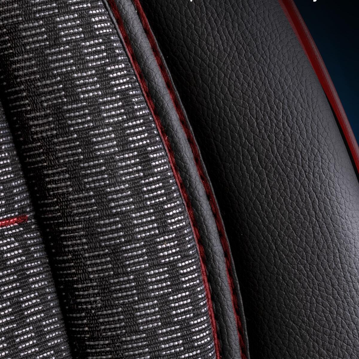Set huse scaune auto Panda Prestige negre cu cusătură roșie, 11 piese