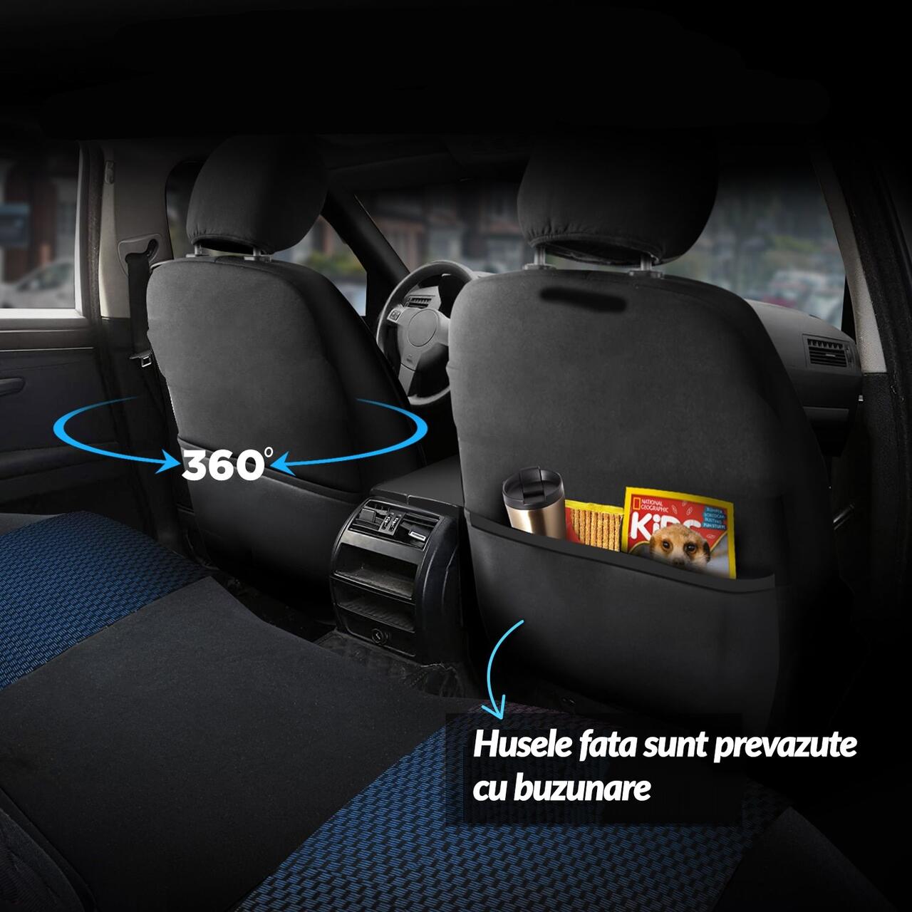 Husele se monteaza pe scaunele din fata si bancheta din spate pentru a imbunatati aspectul interior si pentru a prelungi durata de viata a tapiteriei originale. Sunt potrivite pentru uz zilnic, calatorii frecvente si masini de familie.