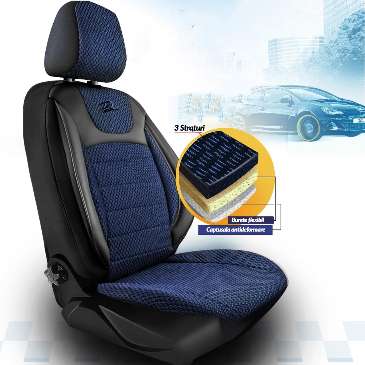 Alege acest set huse scaune auto Panda Prestige pentru a proteja eficient tapiteria originala si pentru a oferi interiorului masinii un aspect modern, in nuante elegante de negru si albastru. Husele acopera bine scaunele, sunt placute la atingere si sunt realizate din materiale in 3 straturi pentru un plus de confort si rezistenta la utilizare zilnica.