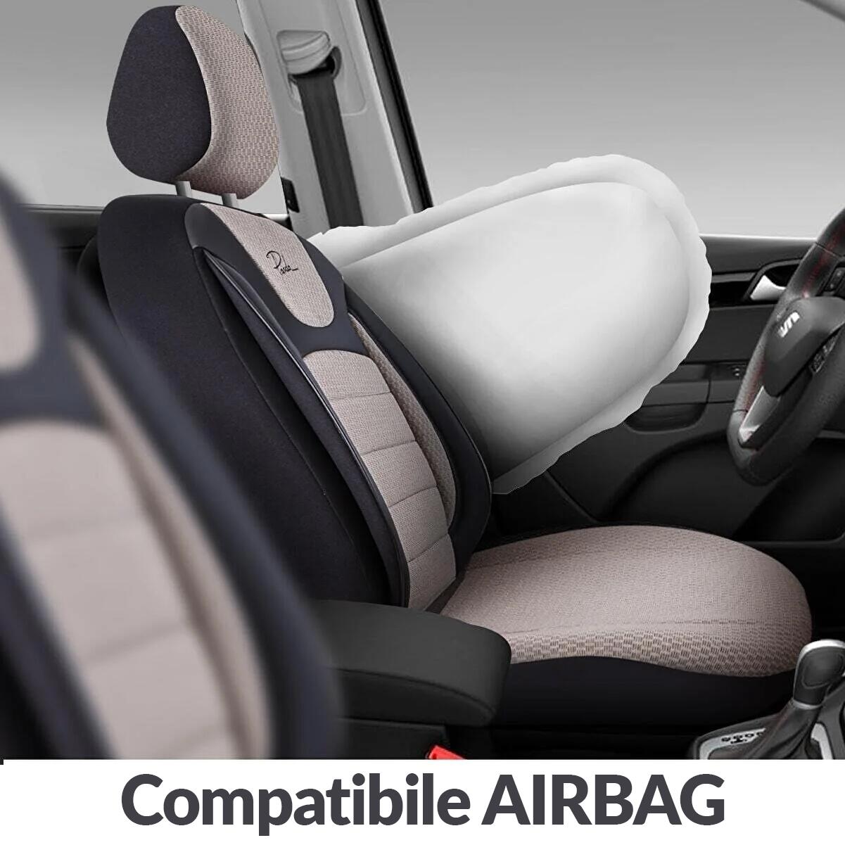 Un avantaj important este compatibilitatea cu airbag-urile laterale, husele fiind certificate TUV Rheinland, pentru utilizare in conditii de siguranta. In plus, designul practic include buzunar pe spatar, util pentru acces rapid la obiectele mici din masina.