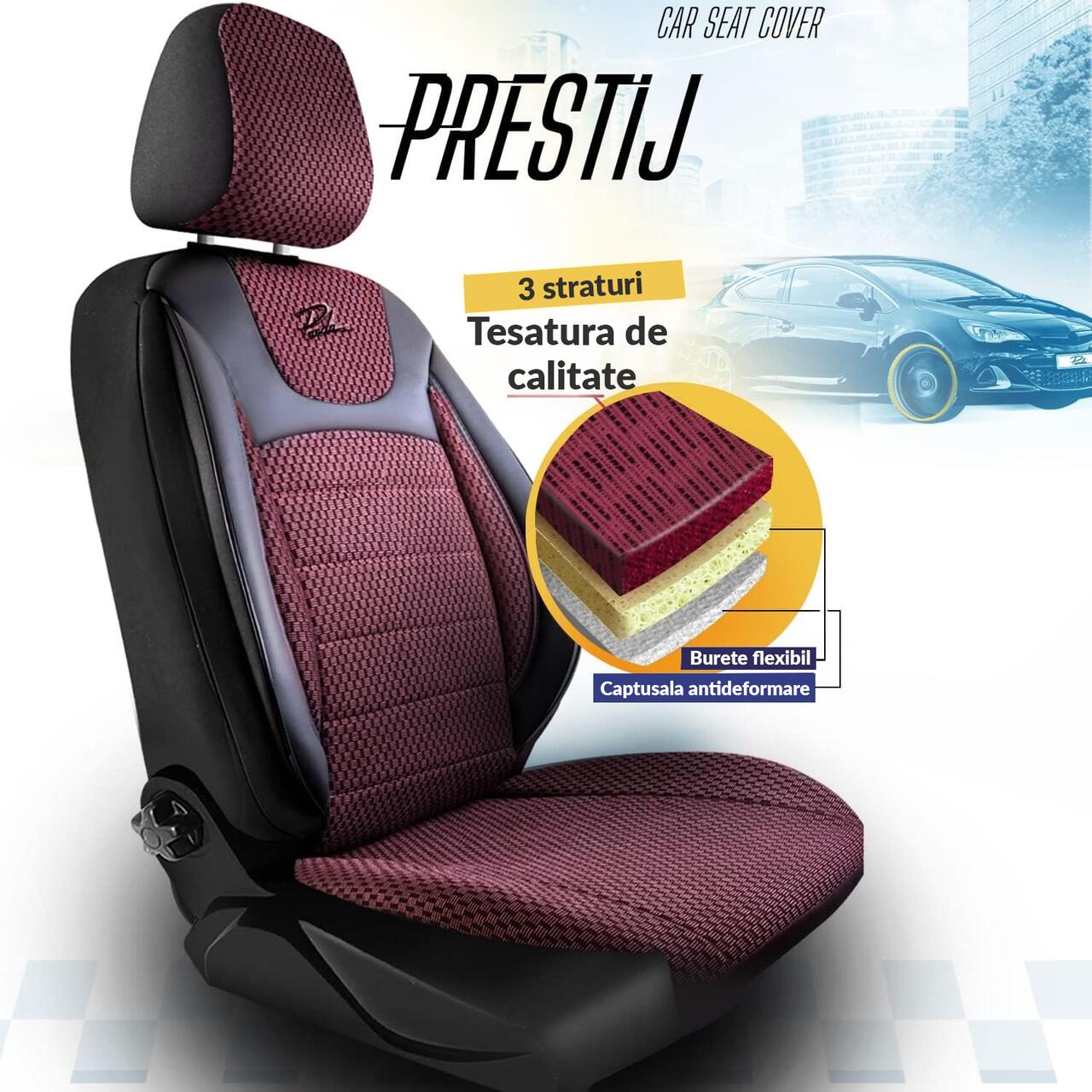 Set Huse Scaune Auto Panda Prestige, Negru-Visiniu, 11 piese Automobile ProTravel