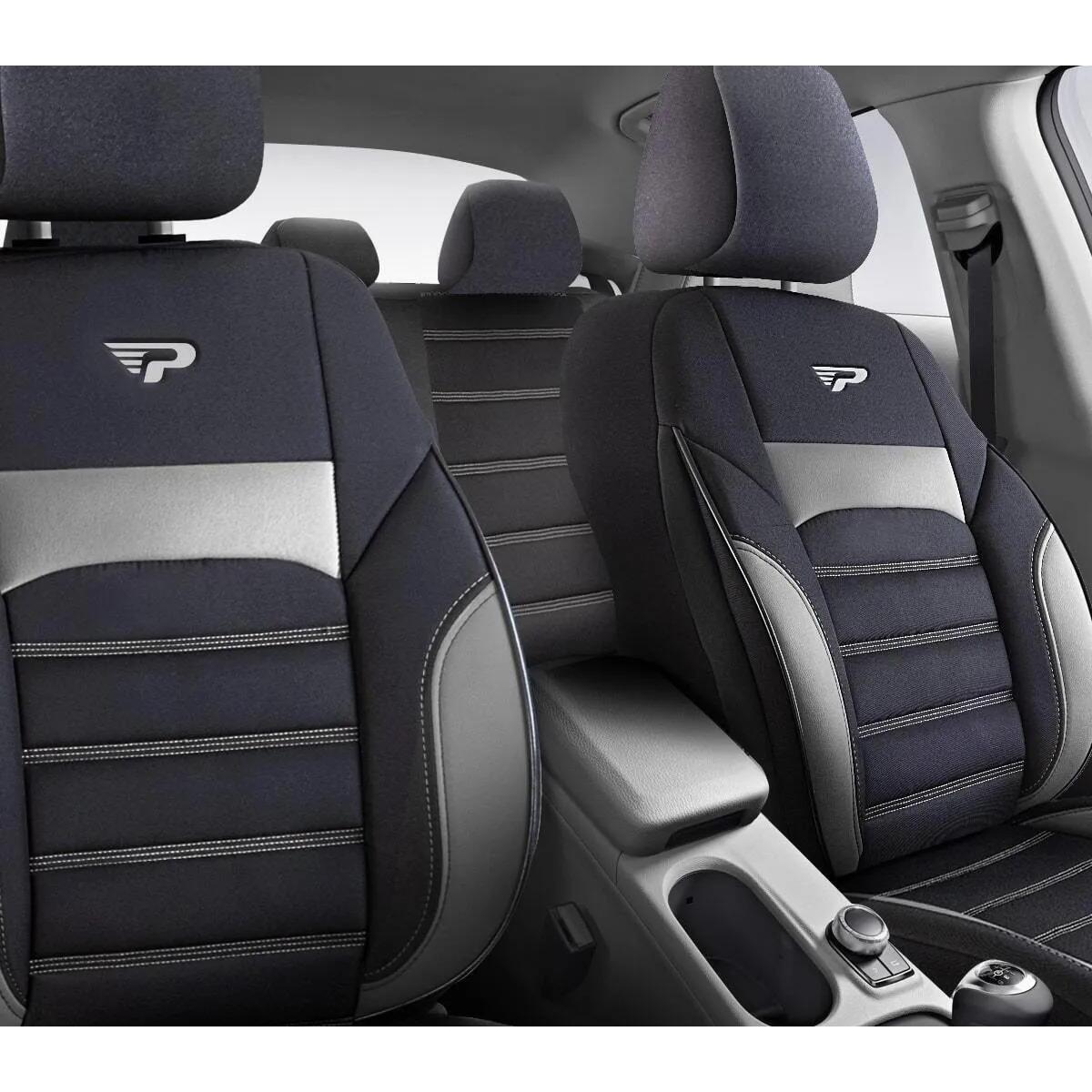 Set huse scaune auto Panda Special 11 piese, gri-negru, bancheta rabatabila
