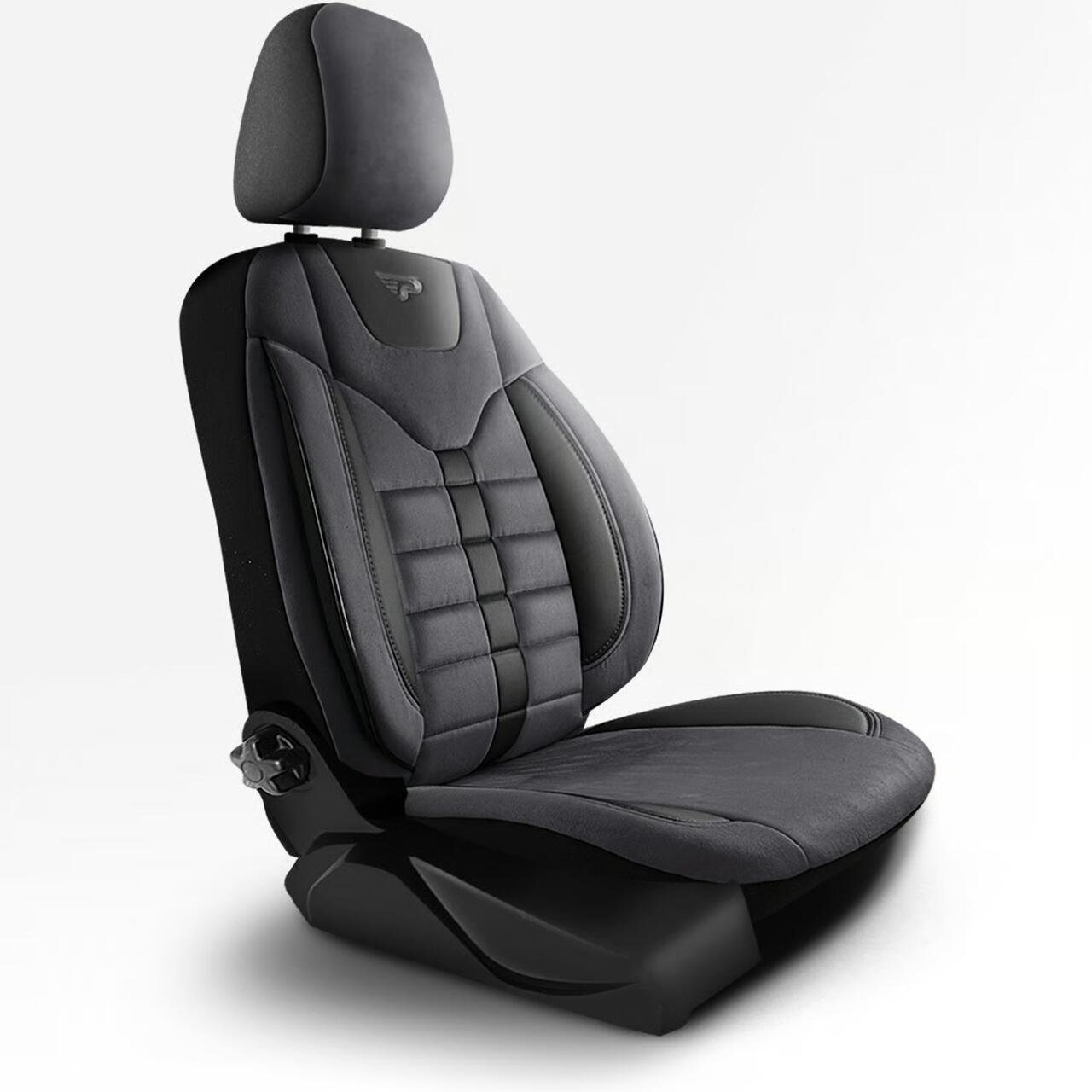 Set Huse Scaune Auto Panda Toronto, tip Alcantara, cu fermoare pentru bancheta rabatabila, negru gri, 11 piese Automobile ProTravel