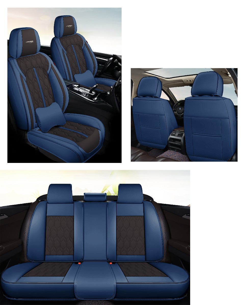 Set huse scaune auto premium 5 locuri Carguard Deluxe, albastru-negru