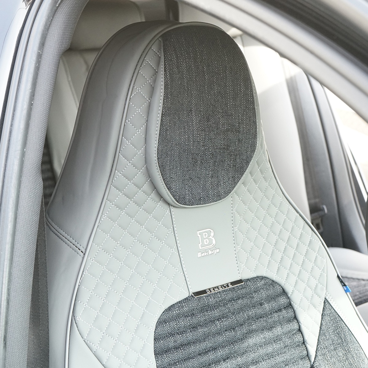 Set huse scaune auto Premium, model BLAZE Elite, design Sportiv, universale, ergonomice, Piele Ecologica cu insertii textile, culoare Gri/Crem FAVLine Selection