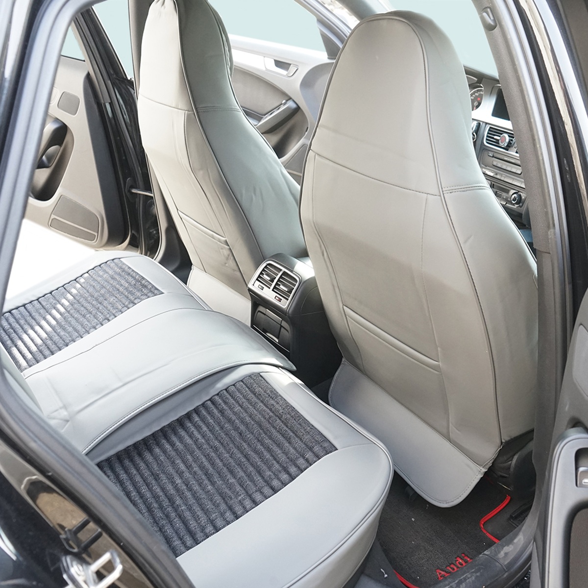 Realizate din piele ecologica de calitate superioara in combinatie cu insertii textile confortabile in zona de contact, husele asigura un echilibru optim intre durabilitate, ventilatie si confort. Materialele sunt rezistente la uzura, usor de curatat si protejeaza eficient scaunele impotriva murdariei si petelor. Setul este compatibil universal si se potriveste majoritatii autoturismelor. Include huse pentru tetiere tip perna si este livrat cu geanta pentru depozitare si transport.