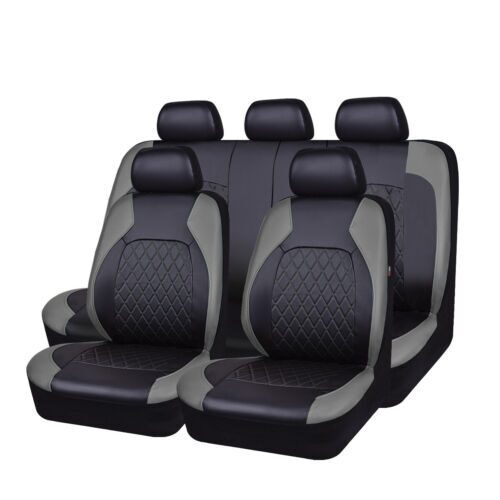 Set Huse Scaune Auto RoGroup Roma, piele ecologica, cu fermoare pentru bancheta rabatabila, 9 Bucati, culoare gri cu negru Automobile ProTravel