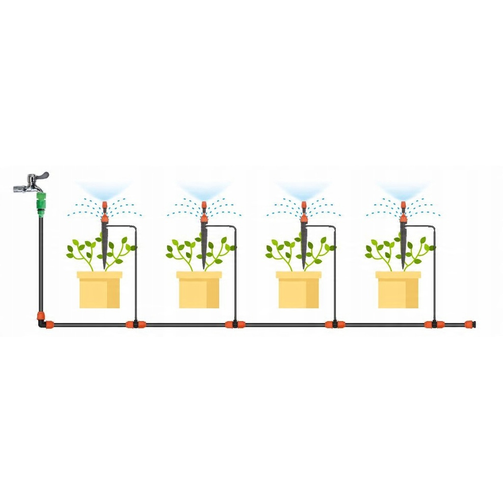 Alege acest set irigare gradina pentru o udare eficienta, uniforma si usor de configurat in functie de spatiul disponibil. Este potrivit pentru irigare plante in gradina, rabate, tuneluri, sera sau ghivece suspendate, oferind o conectare rapida la robinet si o instalare simpla chiar si pentru utilizatorii fara experienta.