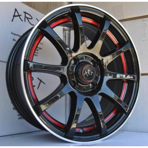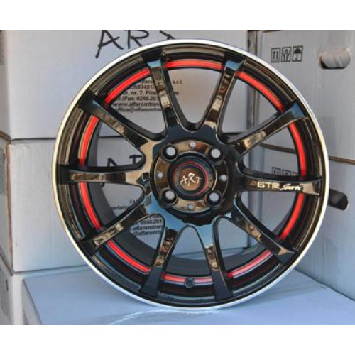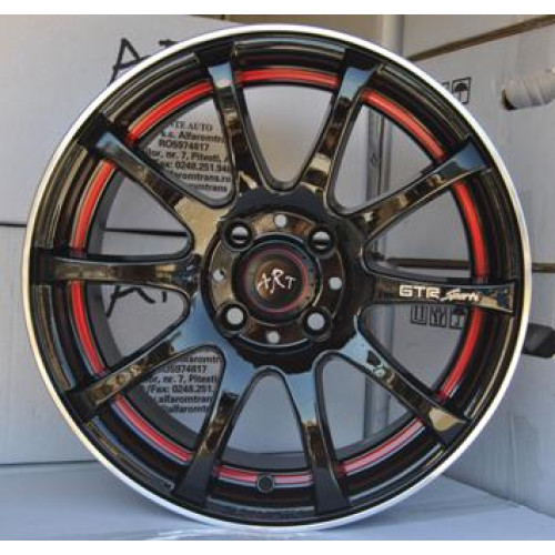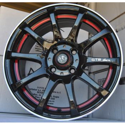 Set jante aliaj ART 355, 14 inch, finisaj negru lucios cu accente rosii